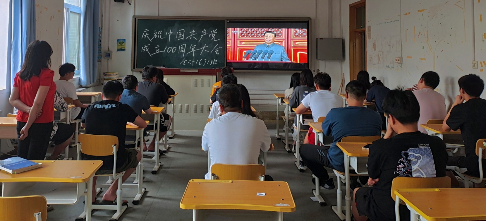 百年岁月峥嵘,百年波澜壮阔,百年成就辉煌。2021年7月1日上午8:00庆祝中国共产党成立100周年大会在北京天安门广场隆重举行,值此举国欢庆之际,会计党支部全体党员教师,本专业学生均以不同形式观看了大会。
