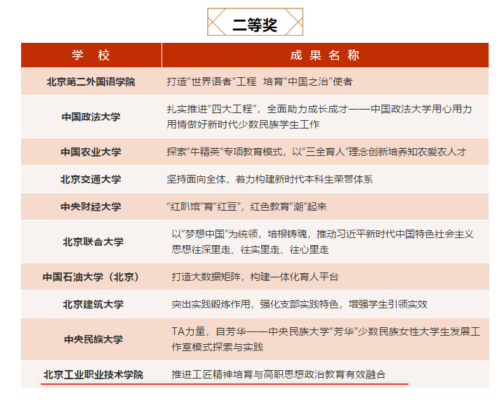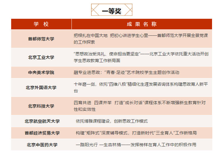 为深入学习贯彻习近平新时代中国特色社会主义思想,进一步推动全国教育大会、全国高校思想政治工作会议和爱体育手机官方网站入口思想政治理论课教师座谈会精神落细落实,总结展示各高校在大学生思想政治工作中的进展与成效,交流推广好做法、好举措、好经验,市委教育工委组织开展了第六届首都大学生思想政治工作实效奖的申报和评选工作,共有50所高校提交112项申报材料。最终,评定优秀成果奖特等奖6项、一等奖8项、二等奖10项、优秀奖31项。