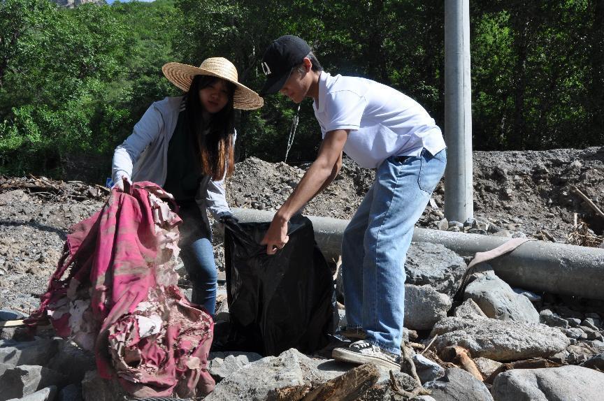 实践团为小龙门村清理河道垃圾
