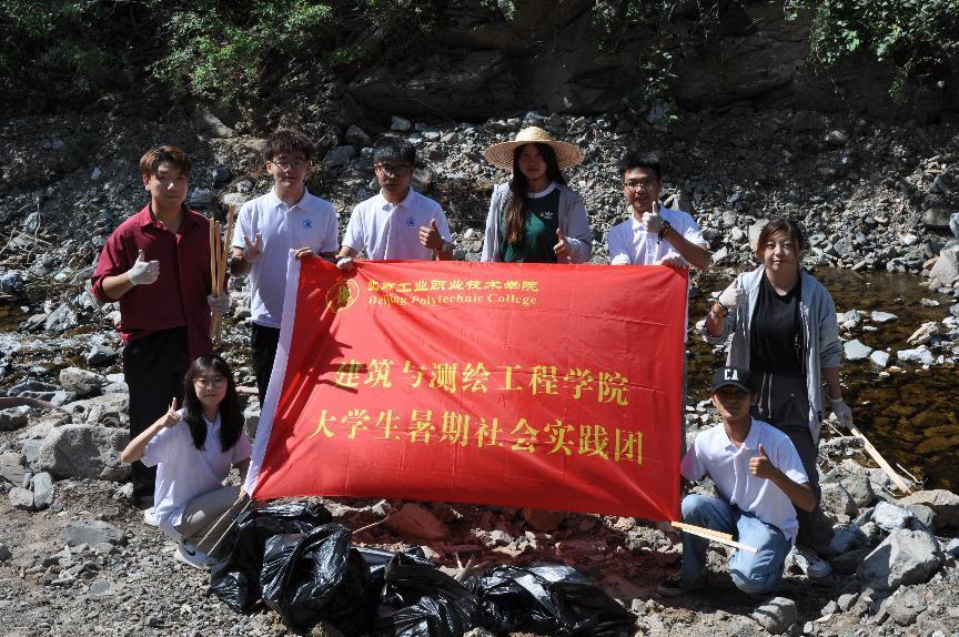 座谈会结束后,建工学生党支部书记高歌老师率领着实践团为小龙门村清理河道垃圾。