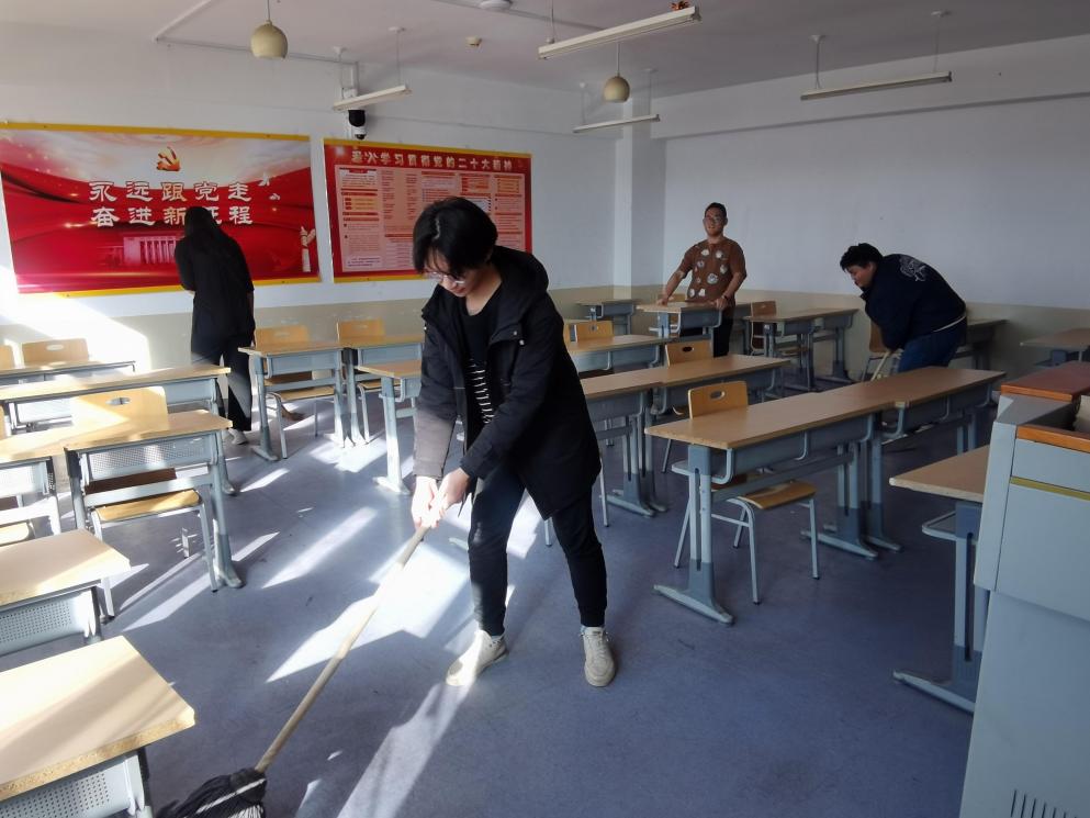 各二级学院以班级为单位,召开了劳动卫生教育、假期安全教育主题班会。学工、教学部门积极发动学生干部、党员团员、学生骨干带动全体学生,按照划分区域,把教室,实训室进行一次彻底的打扫和清理。后勤基建处负责组织好员工对全校公共区域、食堂、卫生间的进行全面清理和消毒,确保清洁无死角。