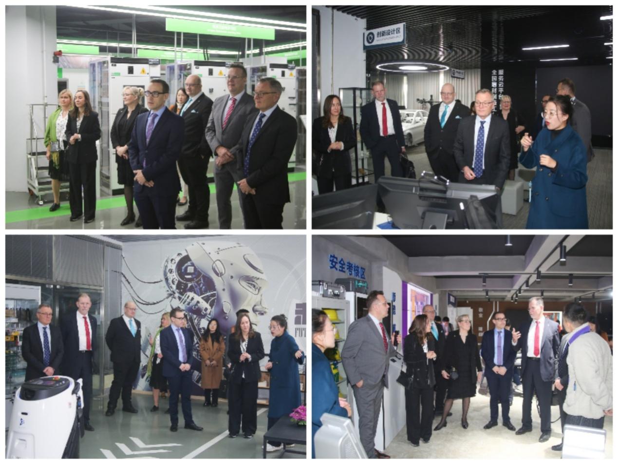 芬兰代表团一行在周燕的陪同下依次参观了中法能效管理应用人才培养与研究中心、汽车维修实训中心、3D打印实训中心、机器人实训中心、智慧运维实训中心、BIM实训中心以及智慧工地实训中心,对我校理实一体化的教学模式和优质的实训条件给予高度赞赏和充分肯定。