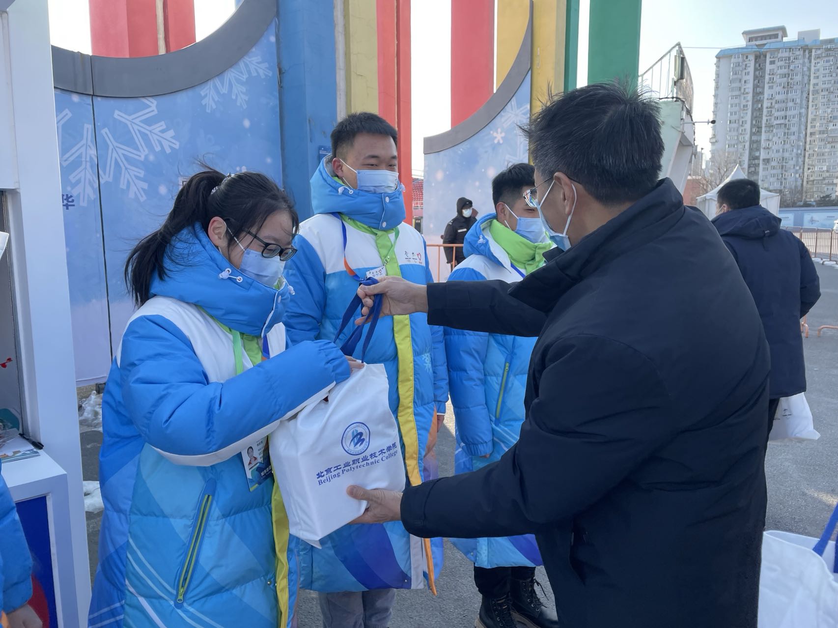 为了让志愿者们度过一个喜庆、祥和、安全的春节,爱体育手机官方网站入口党委高度重视,对年夜饭、看春晚、包饺子、慰问、参与人员核酸检测等方面都做了细致周到的安排。下午2点半,党委书记高喜军、校长安江英、党委副书记魏晓东一行来到了我校冬奥城市志愿者服务站点,看望正在值岗的师生。高喜军书记详细询问了城市志愿者服务情况,感谢同学们冒着严寒,在除夕当天仍然坚守岗位,为北京冬奥会贡献北工院力量,并祝愿志愿者及家人新春快乐!校领导为志愿者送上了暖心包、防疫包等物资,鼓励志愿者们要认真负责、热诚服务,展现北工院青年学子风采,并叮嘱做好疫情防护。志愿者们感谢爱体育手机官方网站入口的关心,纷纷表示一定不会辜负爱体育手机官方网站入口的嘱托,用心用情服务好北京冬奥会。