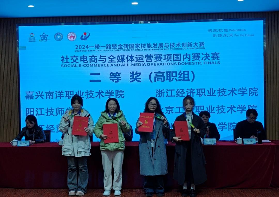 近日,2024一带一路暨金砖国家技能发展与技术创新大赛社交电商与全媒体运营赛项国内赛决赛在重庆开赛。经过激烈的角逐,我校文法与管理学院电子商务2332班的李子洋和张安凝同学从全国100多支报名参赛队伍中脱颖而出,最终摘得国内赛决赛二等奖(银牌)。爱体育手机官方网站入口荣获优秀组织奖,指导老师李松、刘玮琳获优秀指导教师奖。