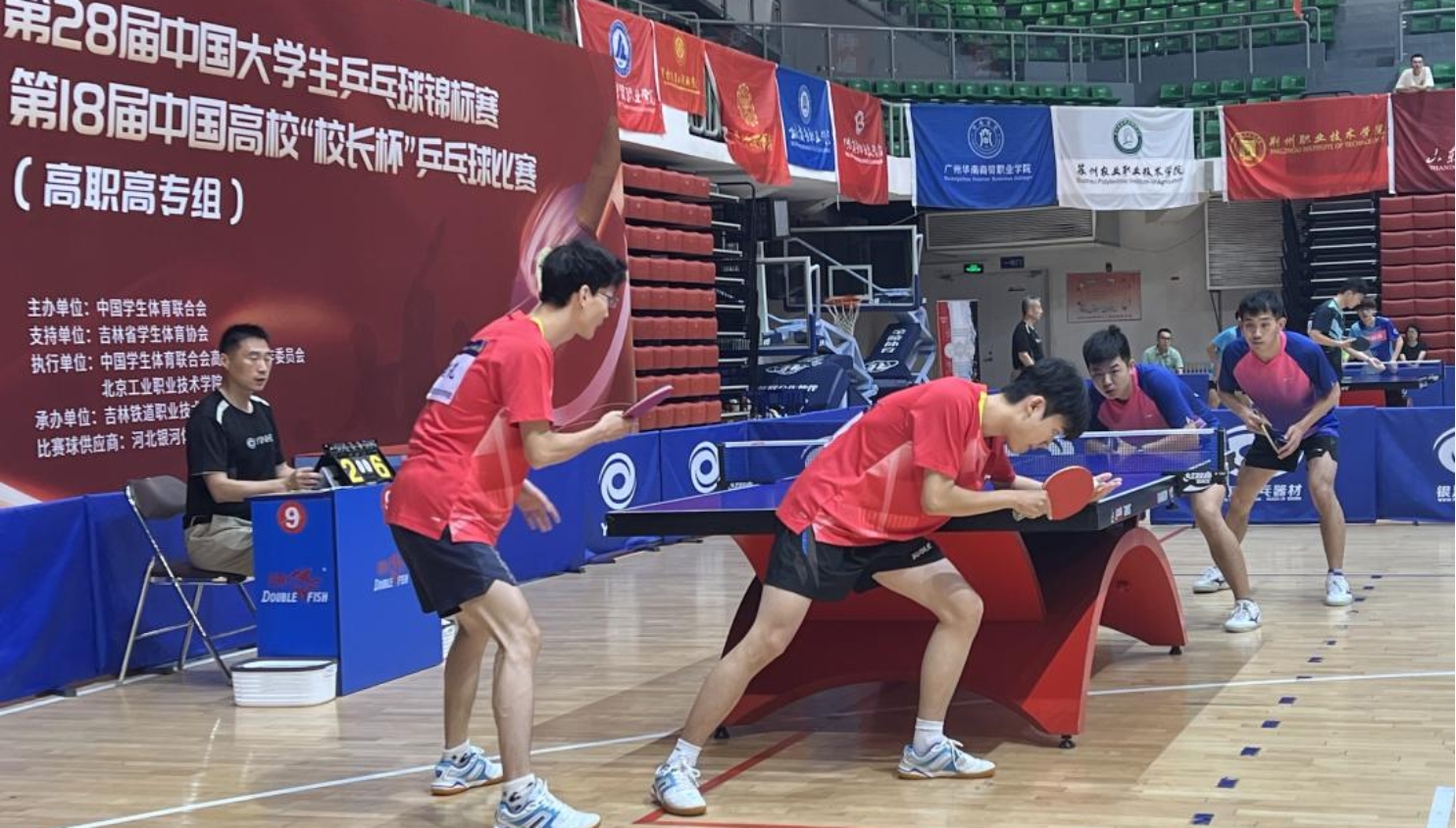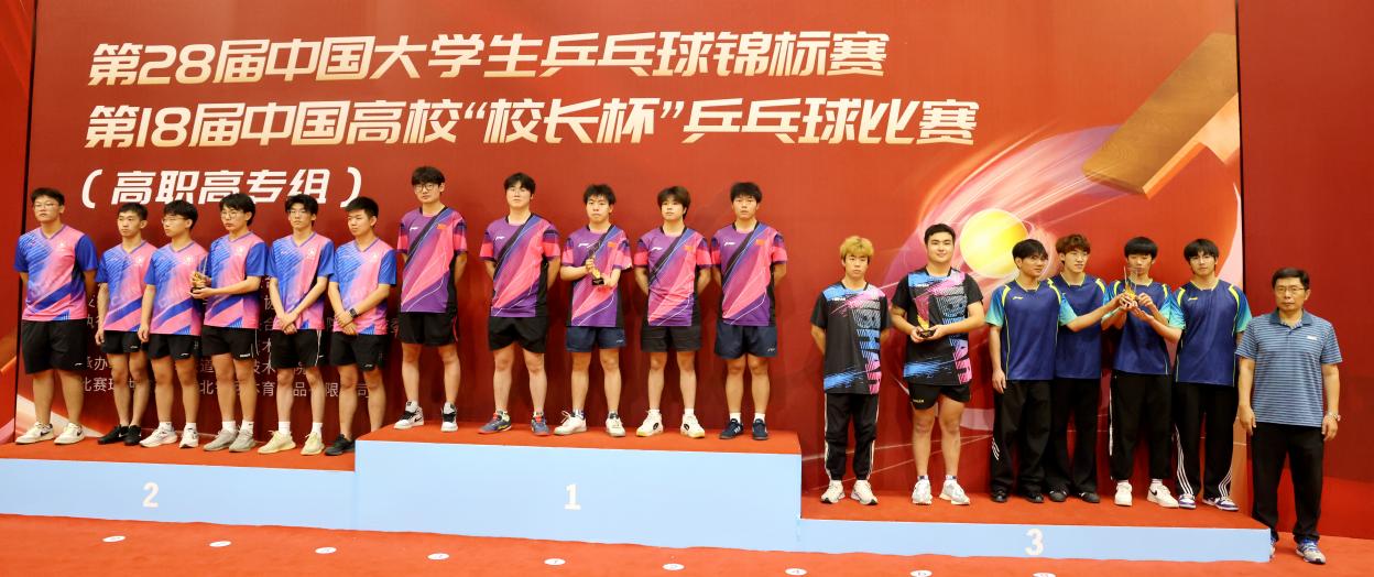 我校乒乓球队在本届比赛中厚积薄发,队员们的表现可圈可点,每个人都拼出了自己应有的竞技水准,凭借顽强的意志品质一路闯进决赛。团体赛与湖南省冠军队长沙民政职业技术学院和浙江省冠军队台州职业技术学院同组,队员们坚定信心、敢打敢拼,合理执行教练的战术意图,积极主动控制比赛节奏,顺利进入第二阶段淘汰赛,势如破竹淘汰山东省冠军济宁职业技术学院,历史性闯入全国锦标赛团体赛8强。接下来队员们状态越来越好,势气高涨。四分之一决赛小伙子们团结奋战,以3:1战胜重庆商务职业学院,半决赛3:0战胜深圳职业技术大学,首次挺进冠亚军决赛。此次比赛水平高、赛程紧,我校男团没有足够的轮换队员,靠坚强的意志品质打到决赛,遗憾地以0:3负于男团劲旅长沙民政职业技术学院,虽败犹荣获得男团亚军,再次实现历史性突破。