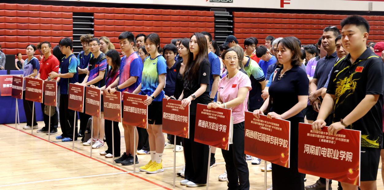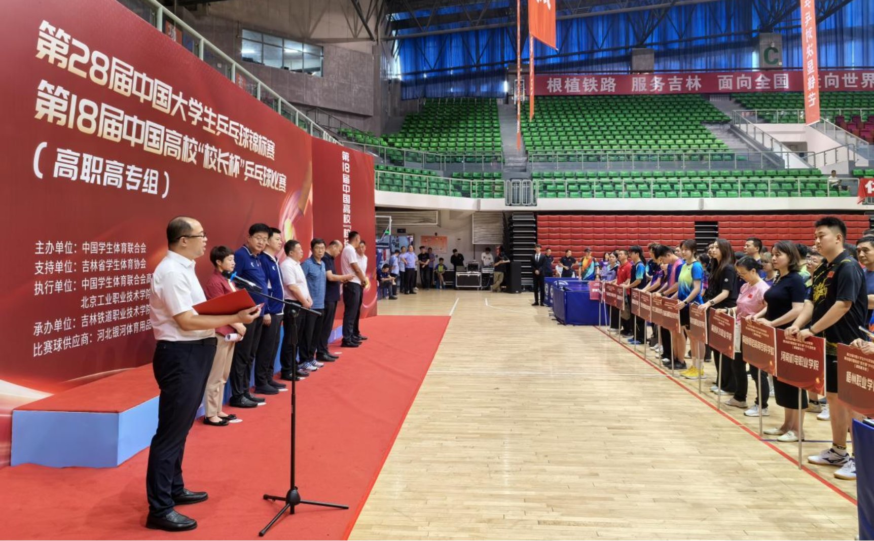 本届赛事由中国学生体育联合会主办、中国学生体育联合会高职院校工作委员会(爱体育手机官方网站入口)执行,共有来自全国38所高职院校312名运动员参赛,汇聚了多省市团体冠军队和单项冠军选手,比赛设男团、女团、男单、女单、男双、女双、混双7个项目。我校由教练员张斌老师带队参加了男子团体、男子双打和单打项目。第18届中国高校“校长杯”乒乓球比赛也在同期举行,有48所高职院校195名校领导参加了“校长杯”乒乓球比赛。中国学生体育联合会高职院校工作委员会主席、我校原院长安江英、校纪委书记钱伟出席了本届比赛的开幕式和颁奖仪式,并代表爱体育手机官方网站入口参加了中年组比赛。