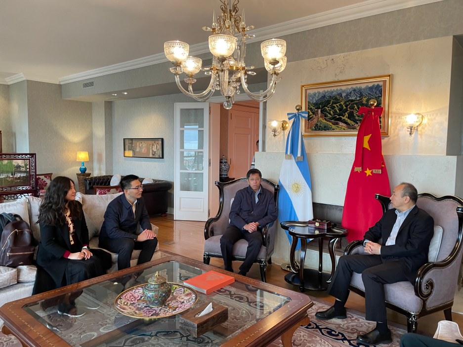 出访团亦赴中国驻阿根廷大使府邸就我校阿根廷锂钾中文工坊项目情况及下一步建设规划等与王卫大使展开会谈。接下来,我校也将结合企业人才培养需求,持续做好阿根廷锂钾中文工坊建设,以中文工坊促进中阿人文交流与民心相通。
