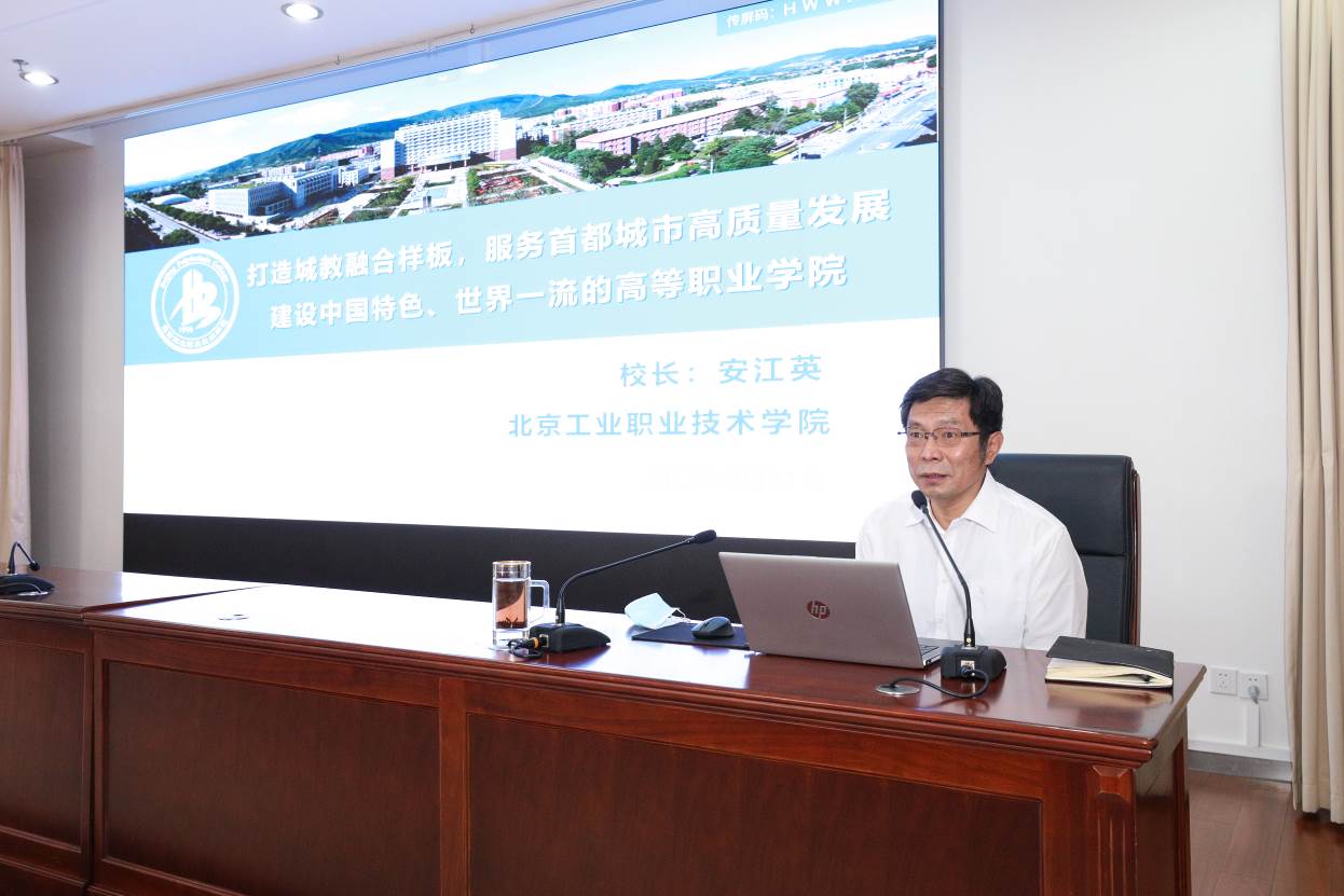 党委副书记、院长安江英代表爱体育手机官方网站入口欢迎来自全国高职院校的领导莅临我校考察调研,希望各位高校领导继续支持爱体育手机官方网站入口的发展,加强交流合作,携手共进,为职业教育发展贡献力量。安院长从爱体育手机官方网站入口基本情况、事业发展情况、今后工作思路三方面做了详细介绍。重点分享了爱体育手机官方网站入口精准办学定位,打造城教融合高地;优化人才培养模式,提升人才培养质量;推进产教融合深度,强化校企协同育人;注重职业素养教育,提升学生综合素质;构建高水平教学团队,持续优化双师结构;构建技术技能平台,彰显社会服务能力;开放融合共享标准,树立职业教育品牌;加强创新创业教育,就业质量保持领先;全面加强党的建设,提供坚强政治保证等方面的思路和做法。安院长还介绍了爱体育手机官方网站入口建设总体目标和实施两步走的建设规划目标,并表示经过建设,爱体育手机官方网站入口要闯出一条职业院校服务城市发展的新路子,成为全国城教融合的典范,舞起改革龙头、打造职教样板,充分展示新时代高职教育的竞争力和国际影响力。