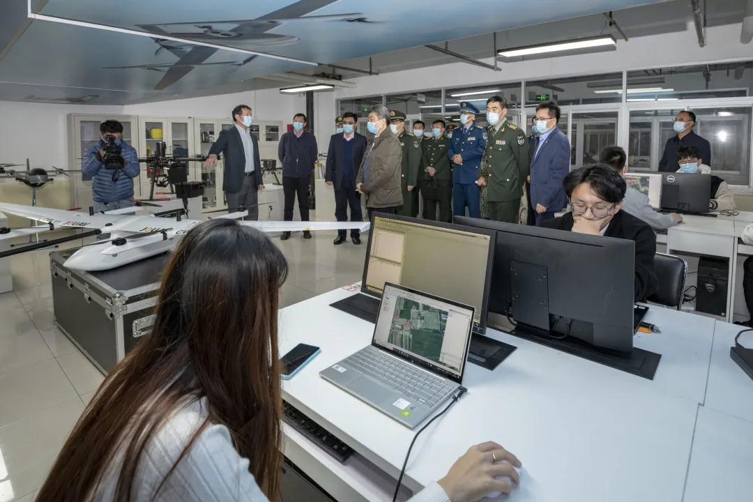 座谈会前,参会军地领导一同参观了爱体育手机官方网站入口“强军育才工程”培训基地一隅——无人机实训基地,听取了爱体育手机官方网站入口开展的“冬奥会”、“精准扶贫”等技术服务项目和部队官兵无人机操控培训、职业资格证书考培情况汇报。