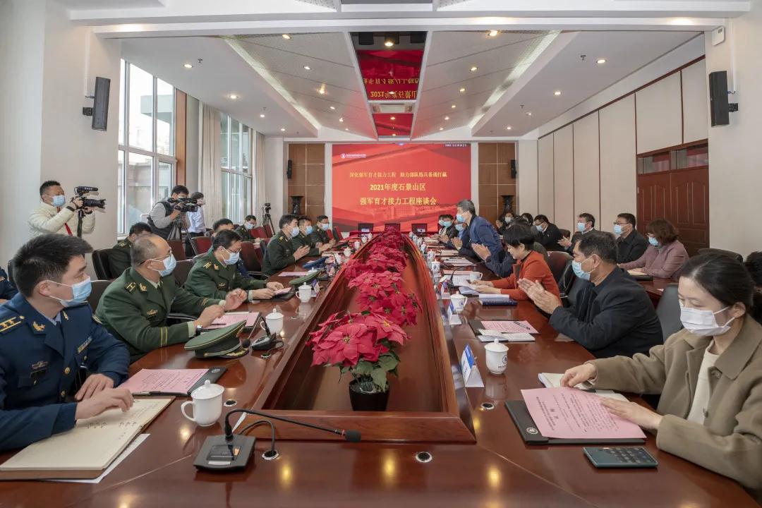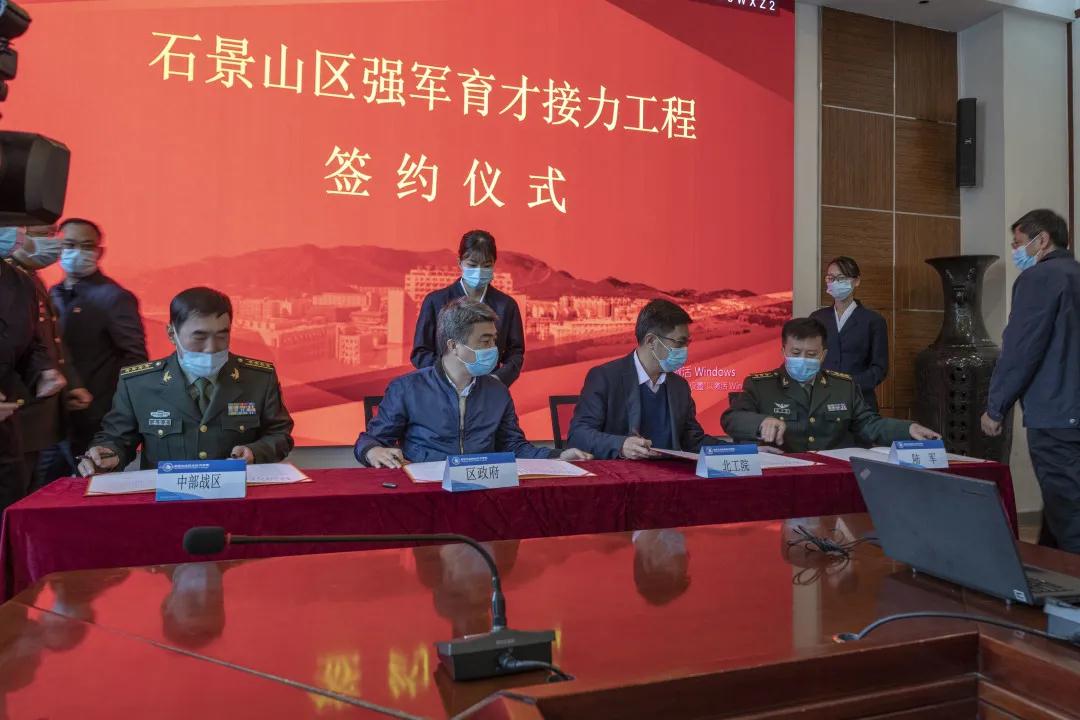 为深化强军育才接力工程,助力部队练兵备战打赢,11月4日上午,石景山区人民政府、中部战区政治工作部、陆军政治工作部领导齐聚我校,召开强军育才接力工程座谈会并签署了“强军育才接力工程”四方协议书。