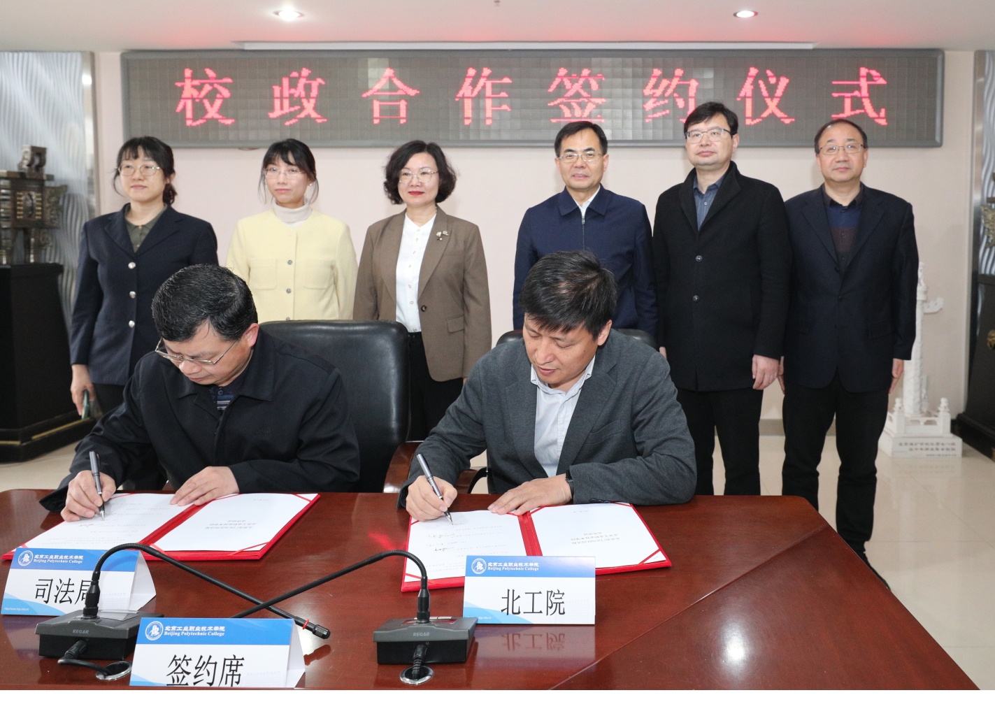 文法与管理学院党总支书记刘建新与门头沟区司法局党组成员、副局长童海峰代表双方签署了合作协议。
