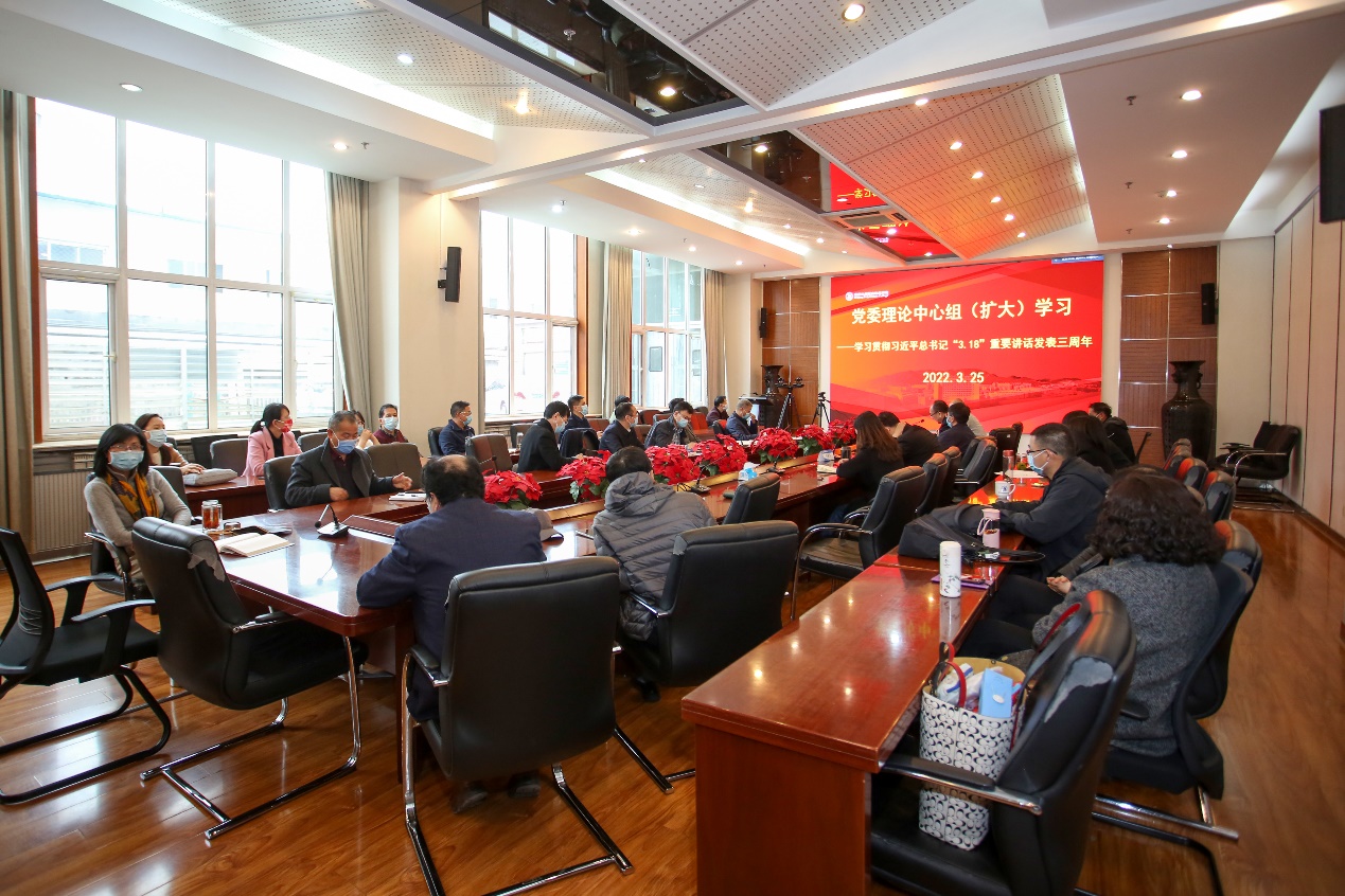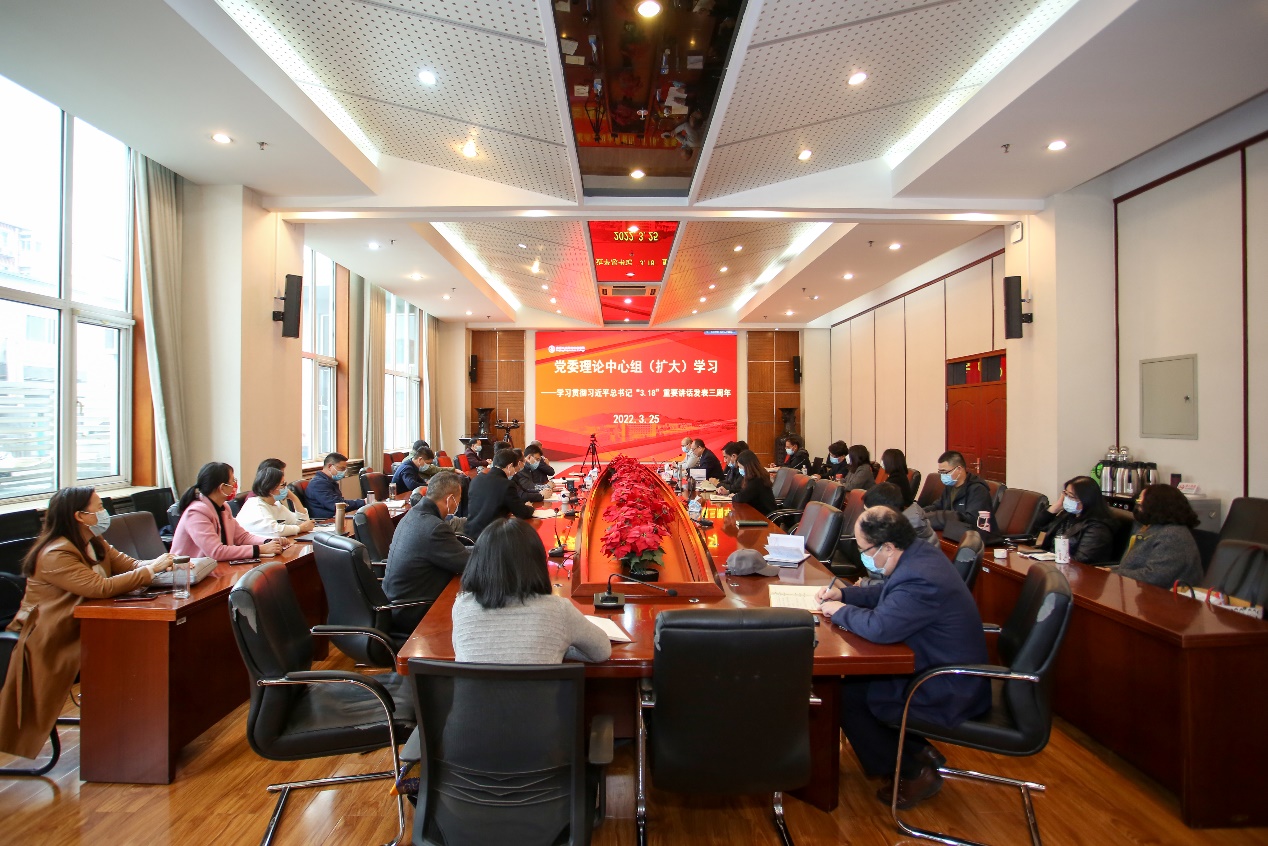 扩大学习分线下线上两个会场。党委理论中心组成员,相关职能部门负责人,马院全体教师参加线下会议。党总支书记(直属党支部书记)、二级学院院长和副院长、中层干部以及爱体育手机官方网站入口课程思政建设负责人通过腾讯会议线上参会。