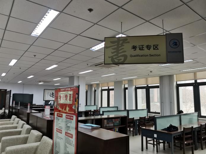 考证专区设在图书馆二层东北角,配有阅览桌和沙发,专区分别设有机电工程学院、电气与信息工程学院、建筑与测绘工程学院、文法和管理学院、基础教育学院、体育部等六个相关考证的独立区域,每个区域根据各二级学院及学部所提供的考证内容和需求,按照考证类别均配备了相应专业图书和参考资料。