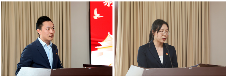 第一期教师“青马工程培训班”班长刘伟、第二期教师“青马工程培训班”组织委员谷晏发言。