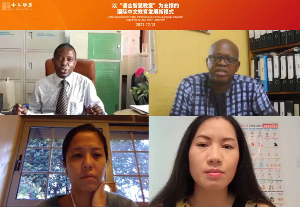 12月13日下午,“以‘语合智慧教室’为支撑的国际中文教育发展新模式”研讨会上,“语合智慧教室”外方合作代表中赞职院赞方院长央瓦、美国波多黎各未来中文爱体育手机官方网站入口创建人兼校长邓美丽、塞拉利昂马可尼大爱体育手机官方网站入口长Joseph A. Turay、希腊雅典学院教师叶东青纷纷发表了热情洋溢的讲话,感谢中方合作伙伴,认为“语合智慧教室”的设立将让教学更加生动形象,有利于师生间的互动,“语合智慧教室”像一座桥梁将大家联系起来,期待未来能够有更全面的合作。