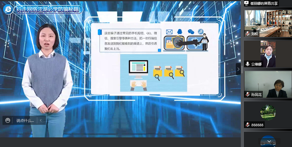 大赛由北京地区信息素养大赛组委会委员组成评审团,采用腾讯会议软件线上微课展示,学习通软件即时打分的方式举办。本着严谨、客观、公正的的原则,全部微课作品采取统一编号、匿名盲评的方式评审。在线上评审中,微课作品逐一播放,评委即时打分,大赛结束现场公布成绩。整个过程公开透明、严谨务实。我院武永建、崔丽娜老师参加了竞赛,崔丽娜老师的《行走网络江湖必学防骗秘籍》取得第二名的好成绩。