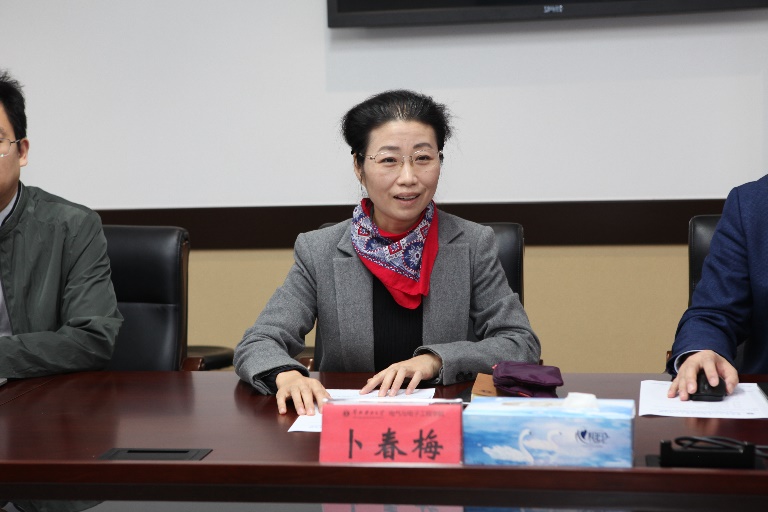 随后冯海明副校长一行到电气与电子工程学院进行调研,电气与电子工程学院党委书记卜春梅代表学院对爱体育手机官方网站入口一行来校调研表示热烈欢迎。她介绍了电子工程学院参会的相关领导、华北电力大学的建校历史、优势学科、专业发展、科研情况。