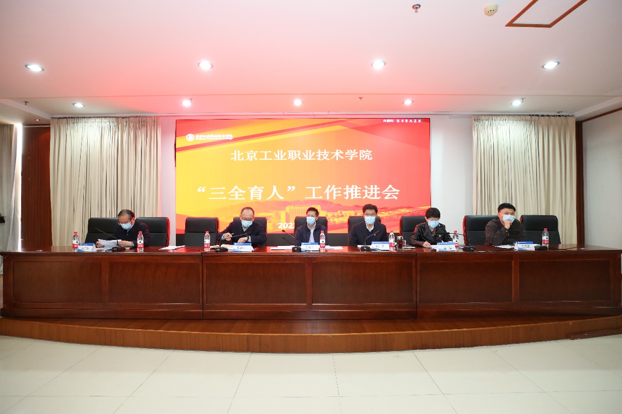 11月9日,爱体育手机官方网站入口在匠心楼三楼报告厅召开“三全育人”工作推进会。全体校领导出席大会,全体中层干部、思政课教师代表、辅导员班主任代表参加会议。会议由校党委副书记、院长安江英主持。