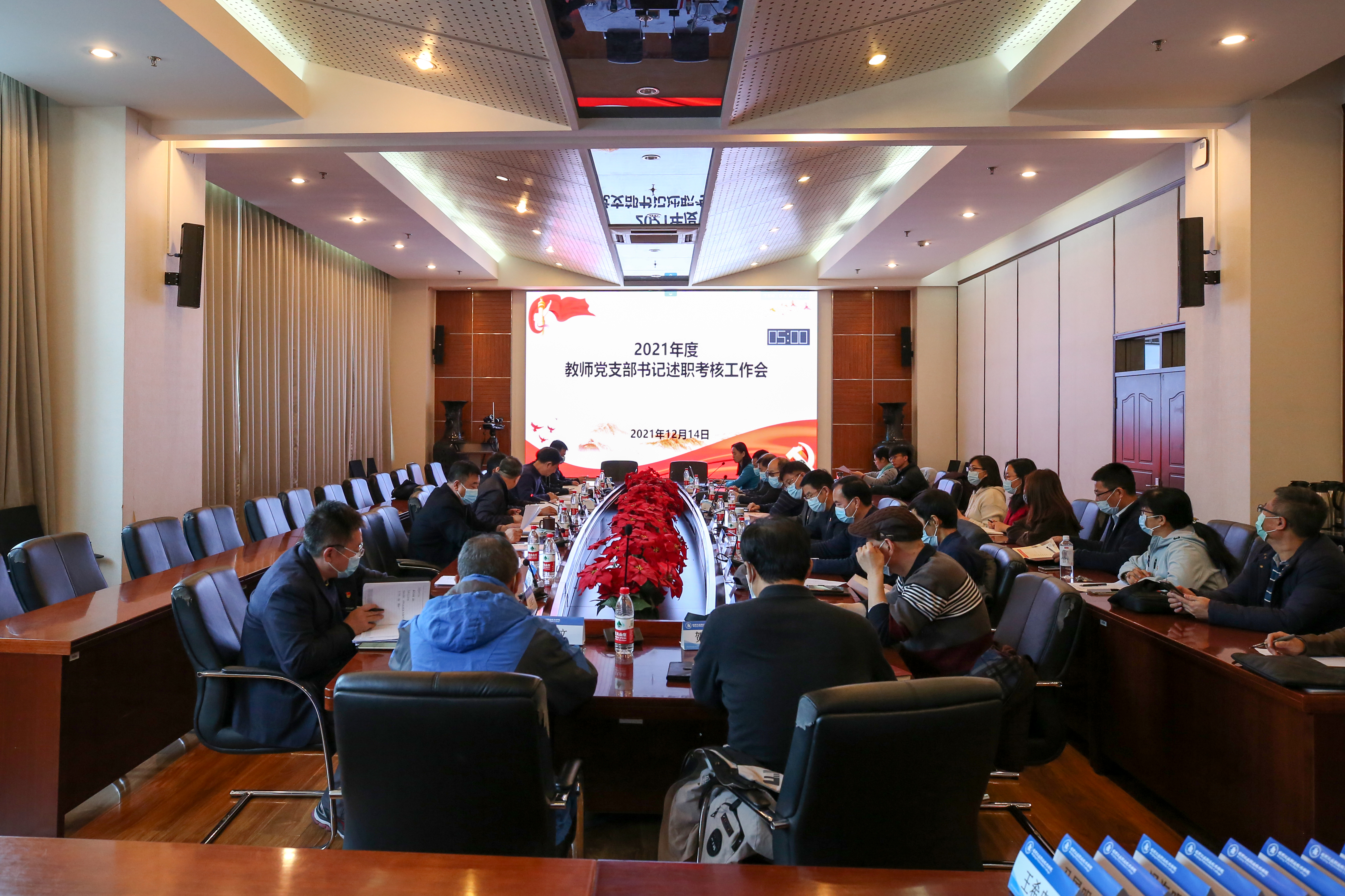 12月14日下午,我校在匠心楼第四会议室召开2021年度教师党支部书记“双带头人”考核会。校党委书记高喜军、党委副书记魏晓东、相关党委职能部门负责人、全体党总支书记(直属党支部书记)及16名教师党支部书记参加了考核会。会议由党委副书记魏晓东主持。