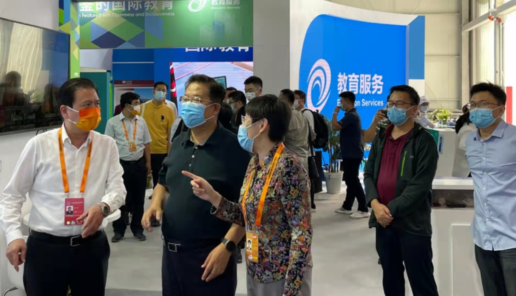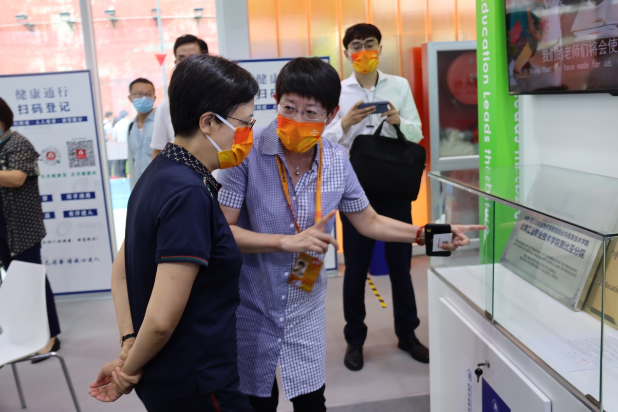 服贸会期间,兄弟院校相关领导参观了我校展位,以服贸会为契机加强了纽带关系。