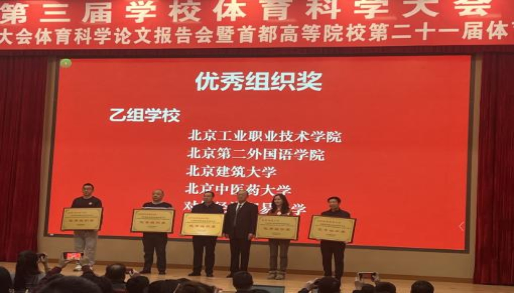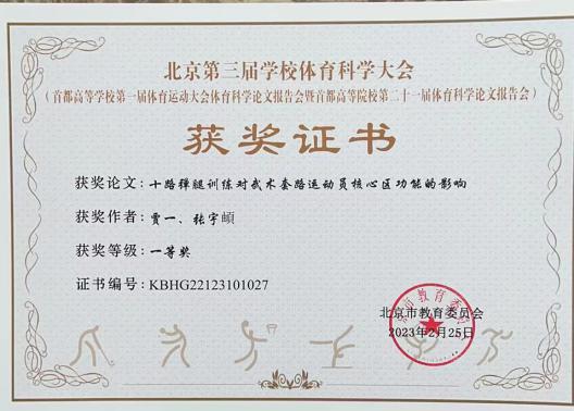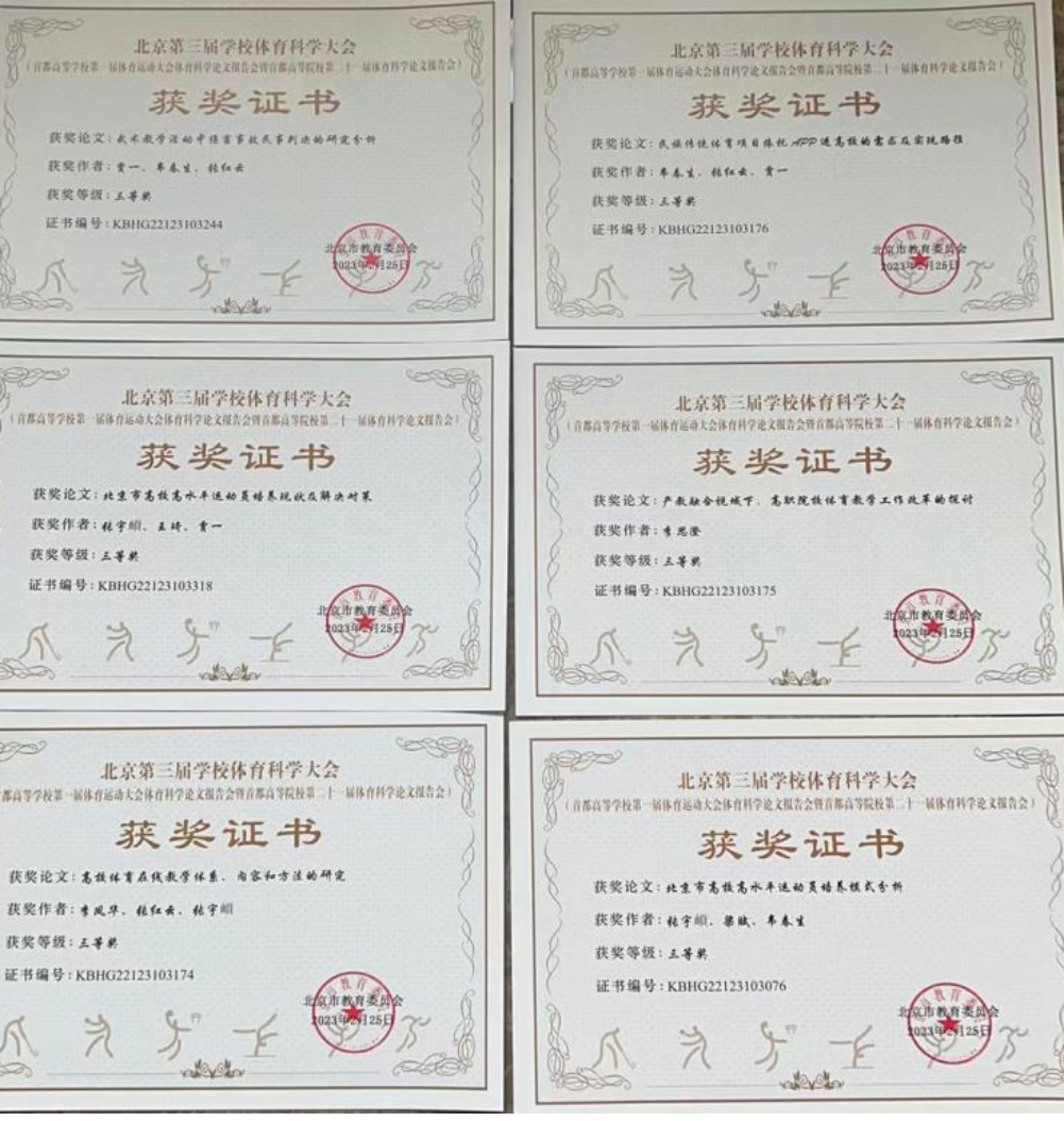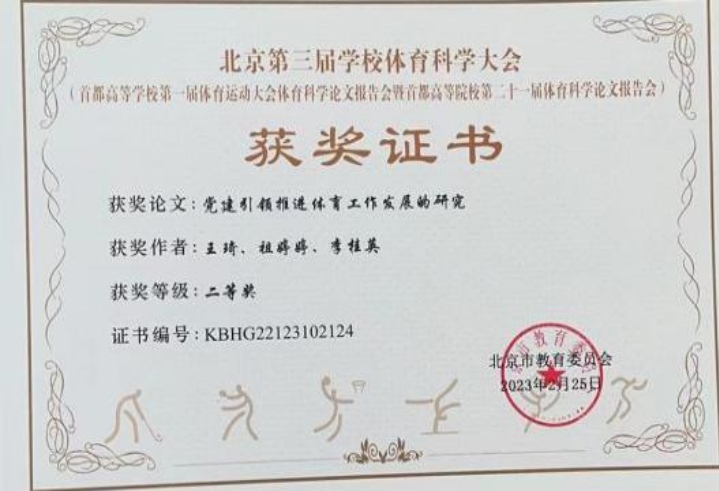 2023年2月25-26日,北京第三届爱体育手机官方网站入口体育科学大会(首都高等爱体育手机官方网站入口第一届体育运动大会体育科学论文报告会暨首都高等院校第二十一届体育科学论文报告会)于中国科学院大学会议中心(雁栖湖校区)召开。北京市教育委员会体卫艺处副处长张志华,北京市大学生体育协会领导、体育学术委员会成员、首都高校体育部主任和论文作者等共计450余人参加了本届科报会。我校共报送25篇论文,获奖11篇,其中一等奖1篇,二等奖1篇,三等奖9篇,最终荣获乙组优秀组织奖。
