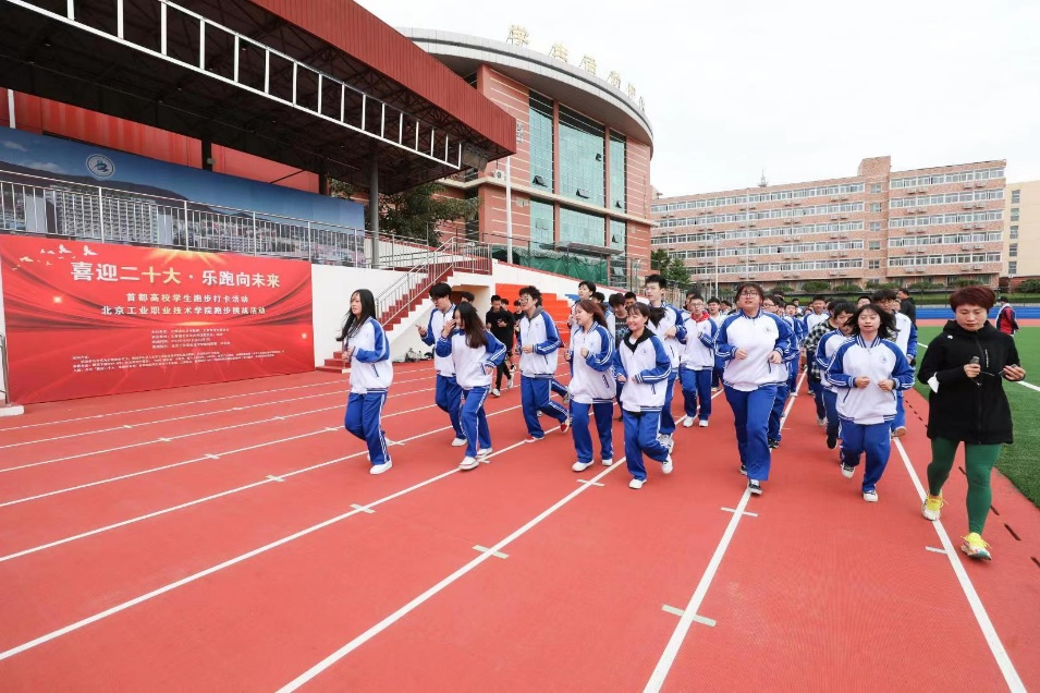“十一”期间,校团委和体育部在全校学生中开展了“喜迎二十大、乐跑向未来”的跑步打卡活动。10月3日上午活动启动仪式在爱体育手机官方网站入口操场举行,500余名师生参与了启动仪式并完成了首次打卡。爱体育手机官方网站入口各体育社团也开展了丰富多彩的活动。足球社举办了“迎国庆师生足球友谊赛”,篮球社举办了“喜迎二十大、青春‘篮’不住”篮球友谊赛,师生同场竞技,用酣畅淋漓的球赛祝福中华人民共和国成立73周年。