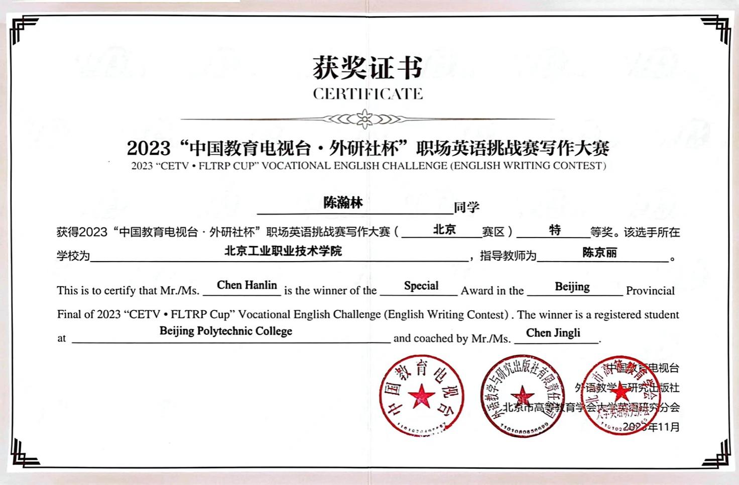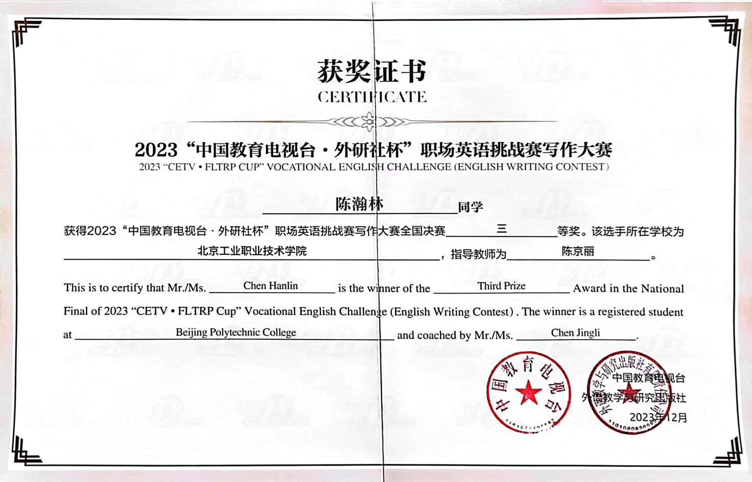 “中国教育电视台·外研社杯”职场英语挑战赛由中国职业技术教育学会指导,中国教育电视台、外语教学与研究出版社联合主办,综合考查学生的英文书面沟通、跨文化交际、逻辑分析、人文思辨等能力及相关素养,赋能学生未来发展,助推职业院校英语写作教学创新与改革,助力院校师生讲好中国故事、传播中国声音。