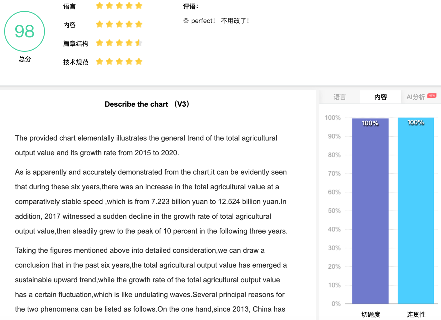 信息化技术深度融入:备赛写作练习在iWrite平台进行,选手们充分利用该平台进行线上写作,水平逐步提高,iWrite平台上积累的英文写作的各个维度成绩变化有助于教师进行教学反思和教学研究,优化教学质量和教学效果,实现了以赛促学、以赛促教、以赛促改、以赛促研。