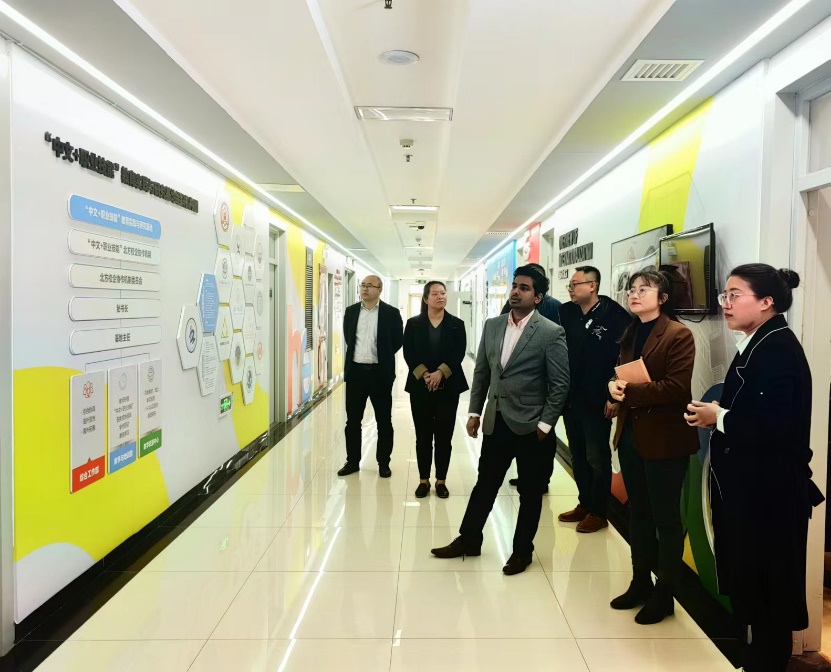 三位来访客人在国际处工作人员的陪同下依次参观了“中文+职业技能”实训基地展示墙、爱体育手机官方网站入口中法能效工程师学院、汽车实训室、BIM实训室、智能工地实训室等,对我校理实一体化的教学模式和优质的实训条件给予高度赞赏和肯定。
