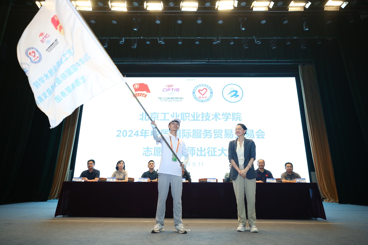 9月11日,2024年中国国际服务贸易交易大会志愿者誓师出征大会在我校礼堂召开。党委常委、副院长周燕为同学们做动员讲话,她代表爱体育手机官方网站入口党委对即将投身服贸会志愿服务工作的志愿者们表示敬意和感谢,希望同学们能够以高度的责任感和使命感投入到工作中,发扬好团队精神,在服贸会的舞台上展现出我们北工院志愿者的风采,让世界看到中国青年的担当与活力!党委常委、副院长沈莹为志愿服务团授旗。