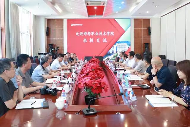 邯郸职业技术学院党委书记杨华云对我校的热情接待表示衷心感谢,并表示我校在“双高”建设、高水平专业群建设等方面成绩突出,希望两校能够建立长期合作关系,为邯郸职业技术学院在“双高”建设、专业群建设等方面的长远发展提供助力。