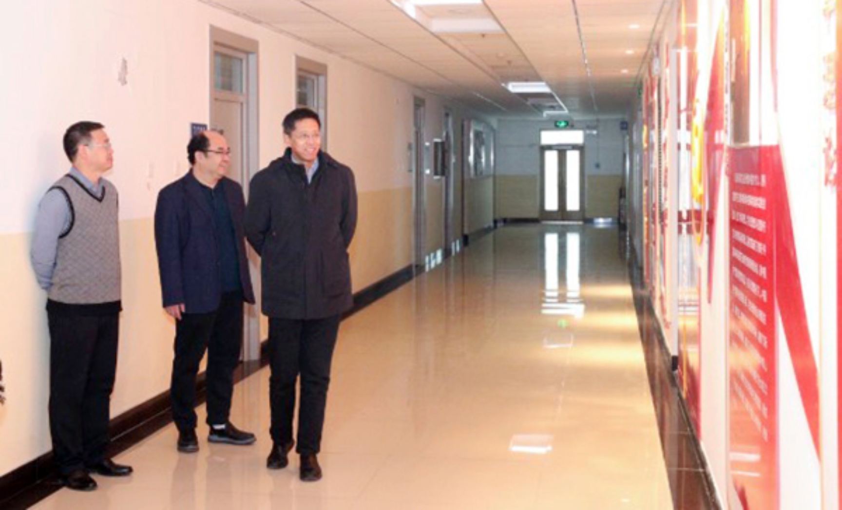 高喜军书记一行首先参观了马克思主义学院思政文化墙,详细了解文化墙的布局、内容和意义,并就文化墙建设等在现场做了交流,马院院长张春勇汇报了有关情况。