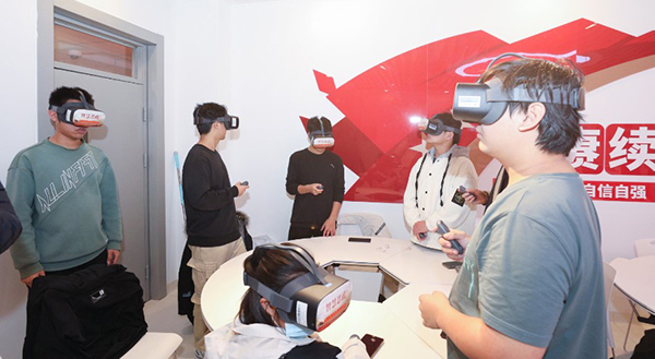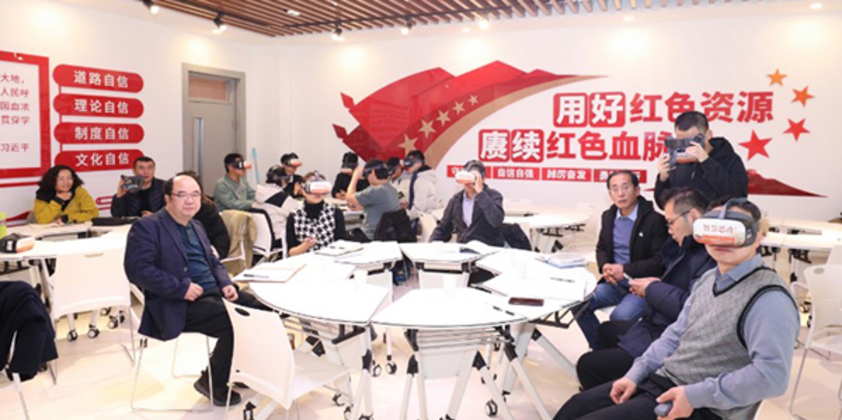 马院思政课虚拟仿真体验教学中心于今年11月底建设完成。该中心位于匠心楼七层,配备思政课专用VR眼镜、思政智慧沙盘和500余节思政课虚拟仿真资源,能同时满足一个标准班级上课体验。思政课虚拟仿真体验教学中心凭借数字化虚拟仿真技术和沉浸式思政体验课程,让学生在“视听触”的虚拟仿真环境中体验中国共产党百年辉煌历程,发挥红色资源在大学生思政课中的重要作用,打造“不同凡响”的思政课学习体验,推动新时代思政课入耳入脑入心。
