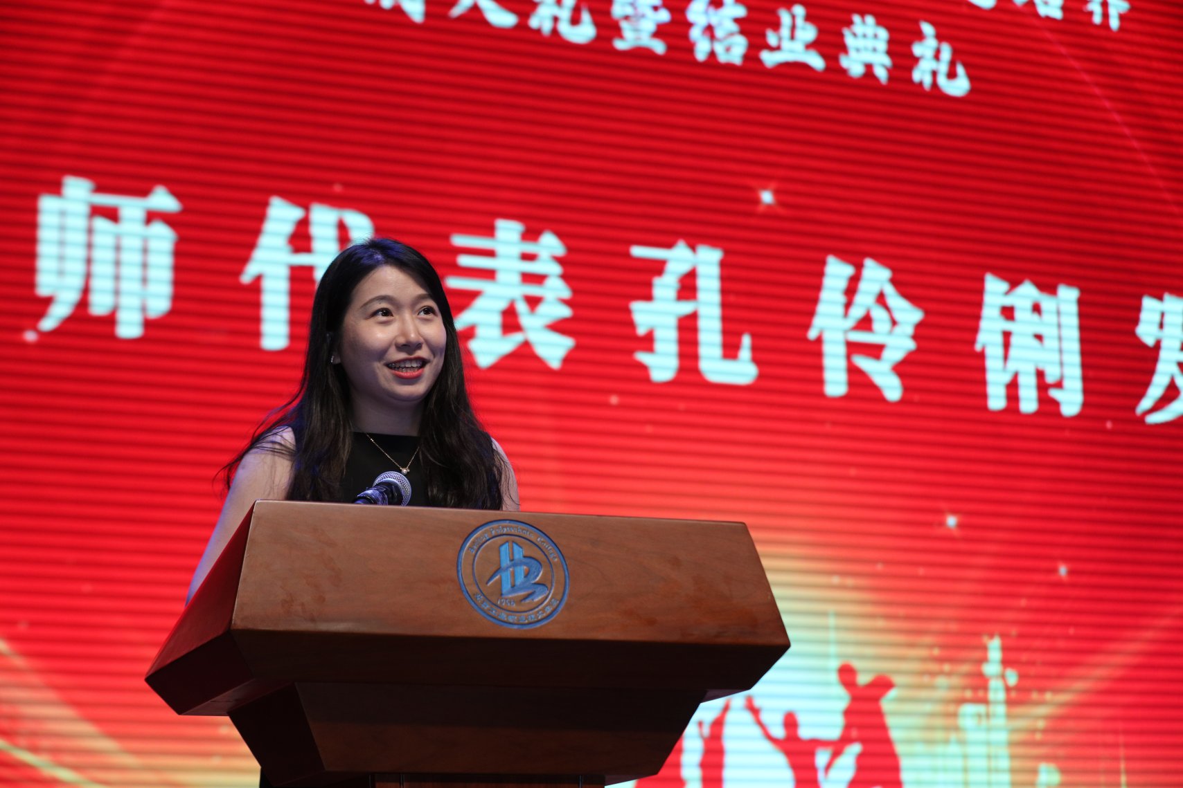 会上教师代表孔伶俐老师代表班主任和“我最喜爱的老师”发言,她为学生送上一份叮嘱,一份期盼,一份祝福。嘱托同学们升入二级学院后能够继续奋斗,让青春的翅膀翱翔在生命的蓝天;在这个过程中,你们可能会碰到困难,可能会沮丧迷茫、会对未来充满焦虑,但只要找到了自己感兴趣的方向,就一定能步入人生的新航道;期盼同学们无论未来升入哪个学院,毕业后从事什么行业,都要相信:只要有一分光,就能发一分热,即使在没有火炬的地方,也能点燃一只萤火,照亮一段前路,温暖数颗人心。祝福同学们身处顺境,乘风破浪不狂妄;身处逆境,积淀力量不自伤。孔老师最后祝福同学们前程似锦,繁华过尽无风霜;余生顺意,自在如风任徜徉!