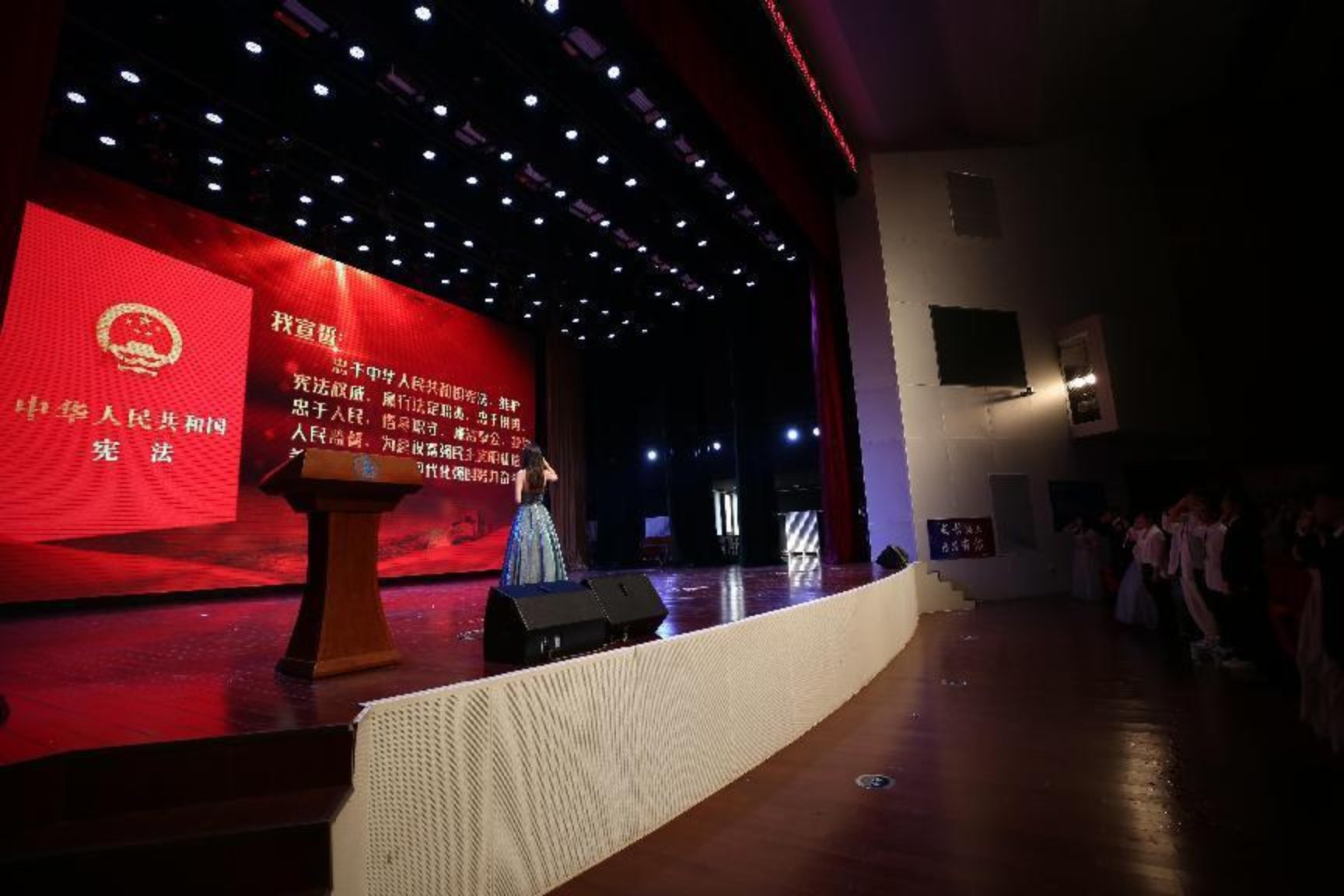 随后举行宪法宣誓环节。家长和学生阅读《给彼此的一封信》。2021级贯通学生代表2105班郑荣涵代表贯通学生发言。2022级贯通学生代表节目:舞蹈《新宝岛》;贯通2105班选送节目:朗诵《与吉春有关的日子》;贯通2103班选送相声《谈设梦想》;2104班选送节目:独唱《Hey kong》《海阔天空》;2021级贯通培养“学习之星”颁奖活动,贯通2109选送节目:独唱《再见深海》;贯通2107选送节图:合喝《晴天》;基础教育学院团总支学生会节目:《青春纪念曲串烧》。