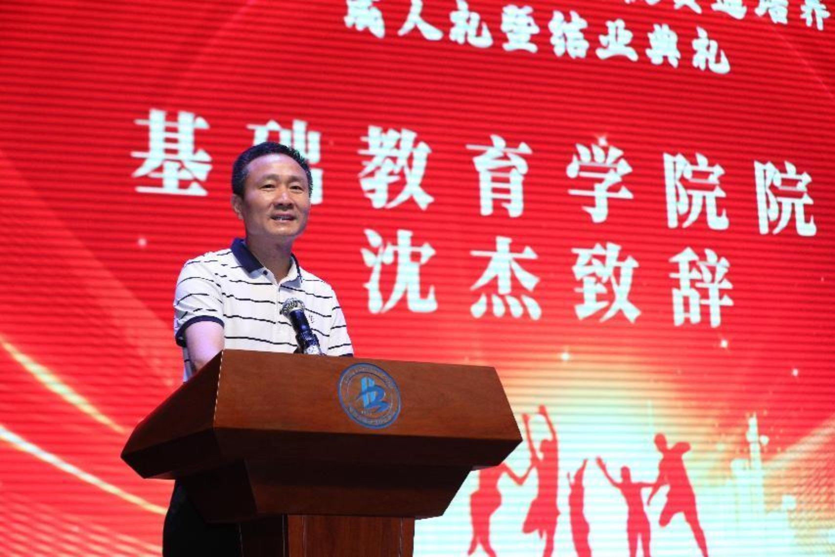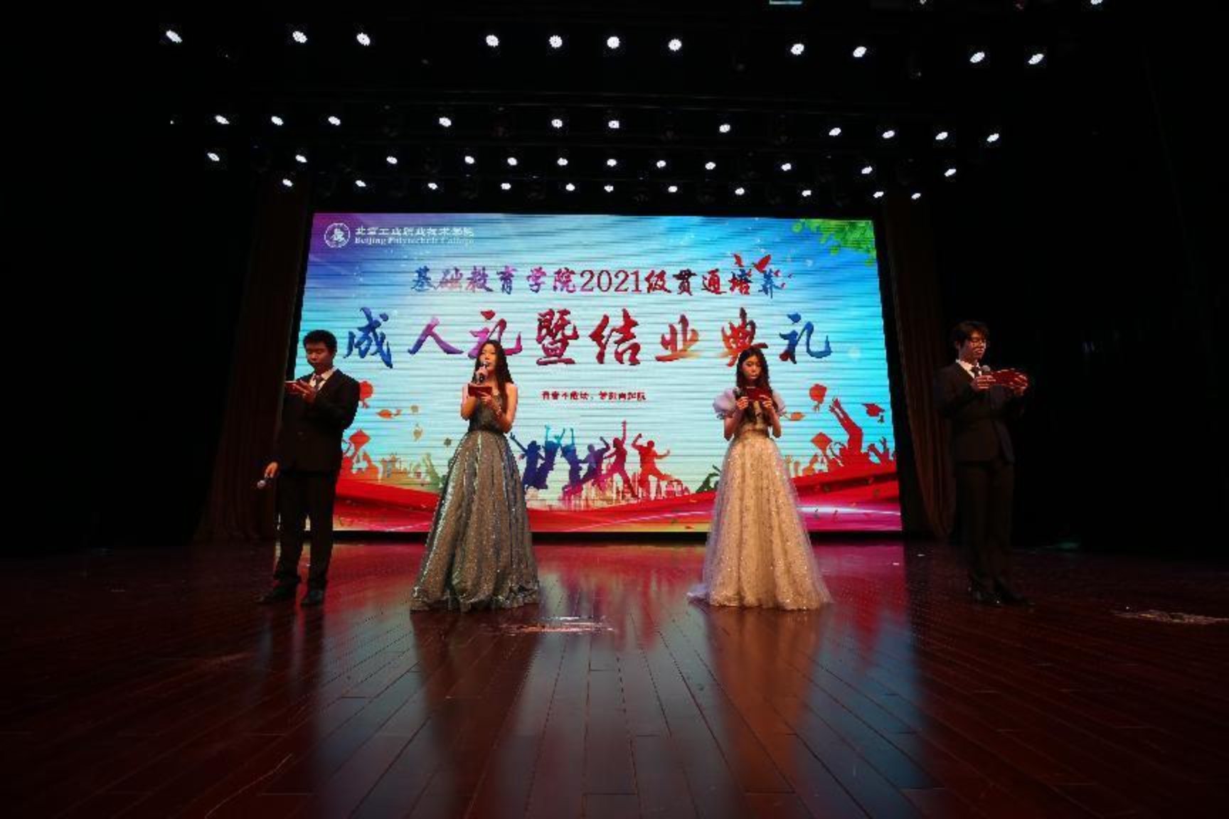 15:30分,一曲动感的开场舞拉开了成人礼和结业典礼的序幕。基础教育学院院长沈杰代表学院在大会上致辞,他表示同学们要懂得感恩父母、感恩老师,因为父母之爱最纯粹,老师的付出最无私,每位老师都希望自己的学生成长成才,超越自己,学生的进步与成就就是给老师最大的回报,也是老师最欣慰的幸福。沈杰院长与学生及家长交流了四点体会,一是爱国守法;二是听话能干;三是学习进取;第四点讲给家长朋友——投资孩子就是投资我们自己后半生的幸福!最后沈杰院长对学生们给予殷勤嘱托,同学们即将进入专业学院继续三年的专业技能学习与实践,期待今后在图书馆和运动场与同学们有更多的相见,期待同学们立志技能成才,技能报国!