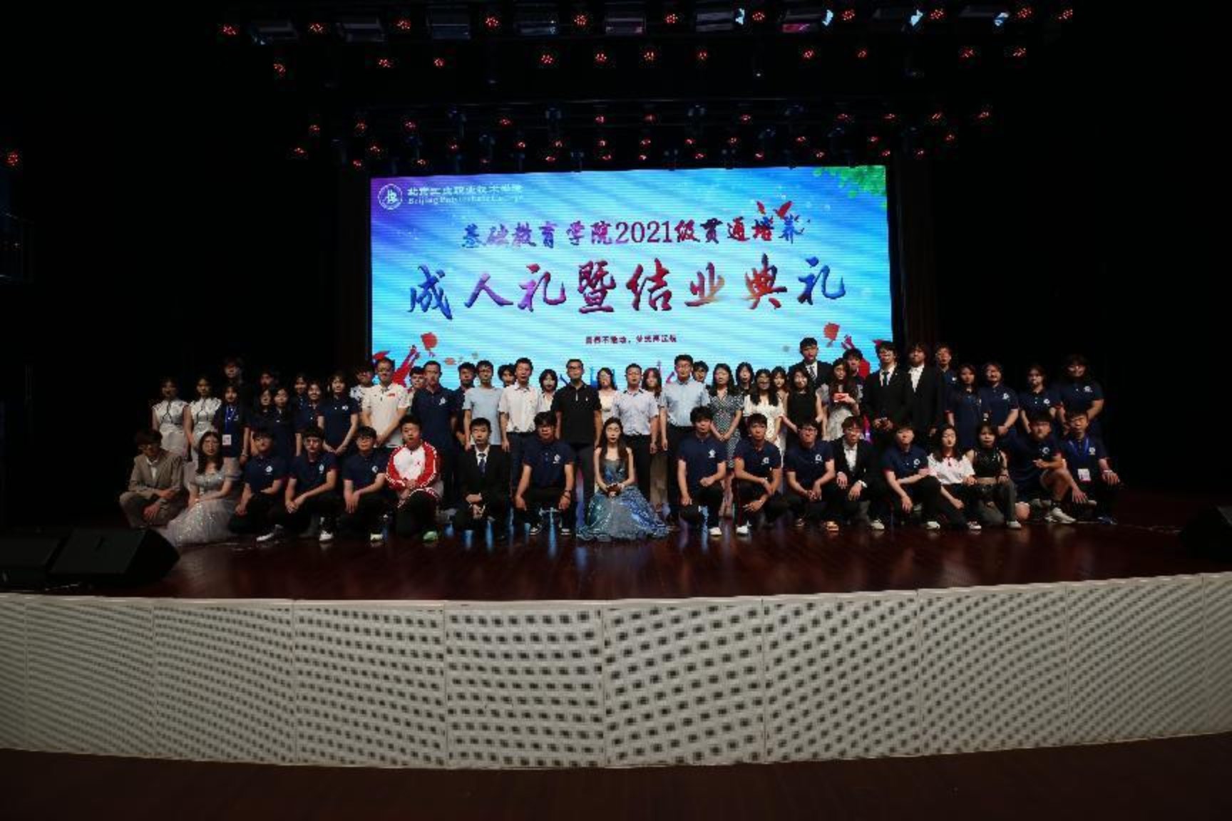 2023年6月18日,由基础教育学院主办,爱体育手机官方网站入口关心下一代工作委员会协办的2021级贯通培养成人礼暨结业典礼在礼堂隆重举行。基础教育学院2021级学生及家长500余人参加本次活动。基础教育学院党总支书记王巍、院长沈杰、副书记史伟、班主任和任课老师参加典礼。