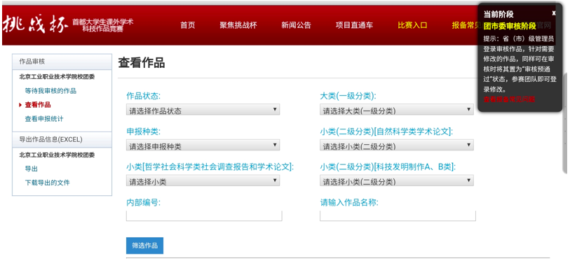 “挑战杯”首都大学生课外学术科技作品竞赛至今已成功举办十届。竞赛创办以来,始终坚持“崇尚科学、追求真知、勤奋学习、锐意创新、迎接挑战”的宗旨,在推动广大高校学生参与学术科技实践、发现和培养创新型人才、深化高校素质教育等方面发挥了积极作用,集中展示了高校的育人成果,体现了鲜明的导向性、示范性和群众性,在高校和社会上产生了广泛、良好的影响。