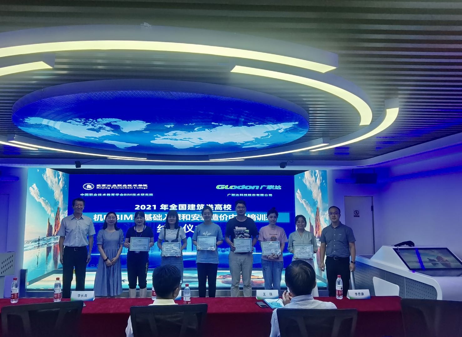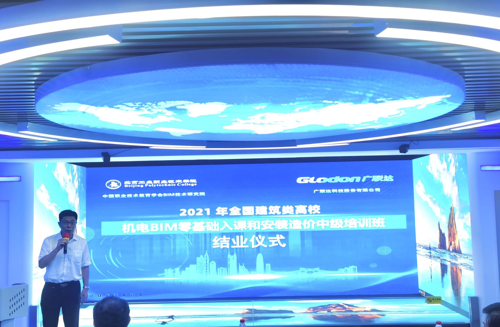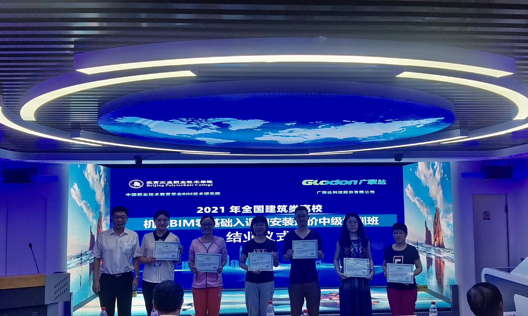 2021年7月24日,由我校BIM技术研究院举办的2021年全国建筑类高校机电BIM零基础和安装造价中级培训班顺利结业。爱体育手机官方网站入口校长兼中国职业教育学会BIM技术研究院院长安江英、建工学院书记王强、院长李长青、副院长张丽丽和广联达公司产品运营部总监李思康出席了本次结业仪式。