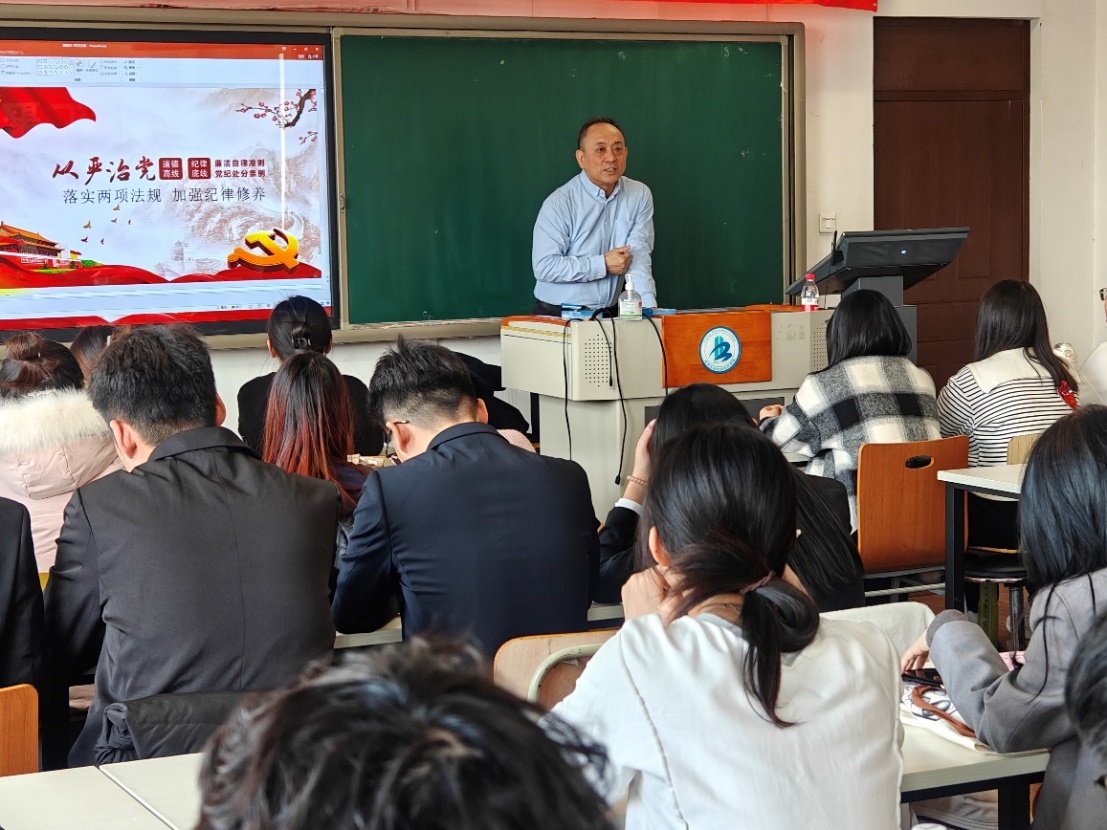 11月22日,党委副书记魏晓东同志以“从严治党落实两项法规加强纪律修养”为主题,为发展对象讲述了《中国共产党廉洁自律准则》和《中国共产党纪律处分条例》的意义,用生动详实的案例重点解读了两项法规的具体规定,对学员个人生活中如何践行两项法规提出了明确的要求。