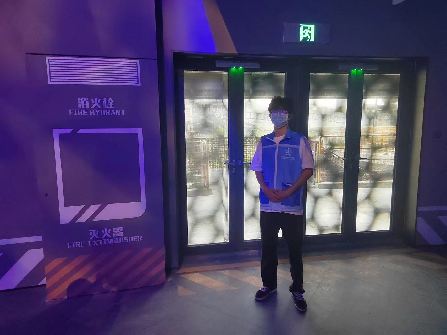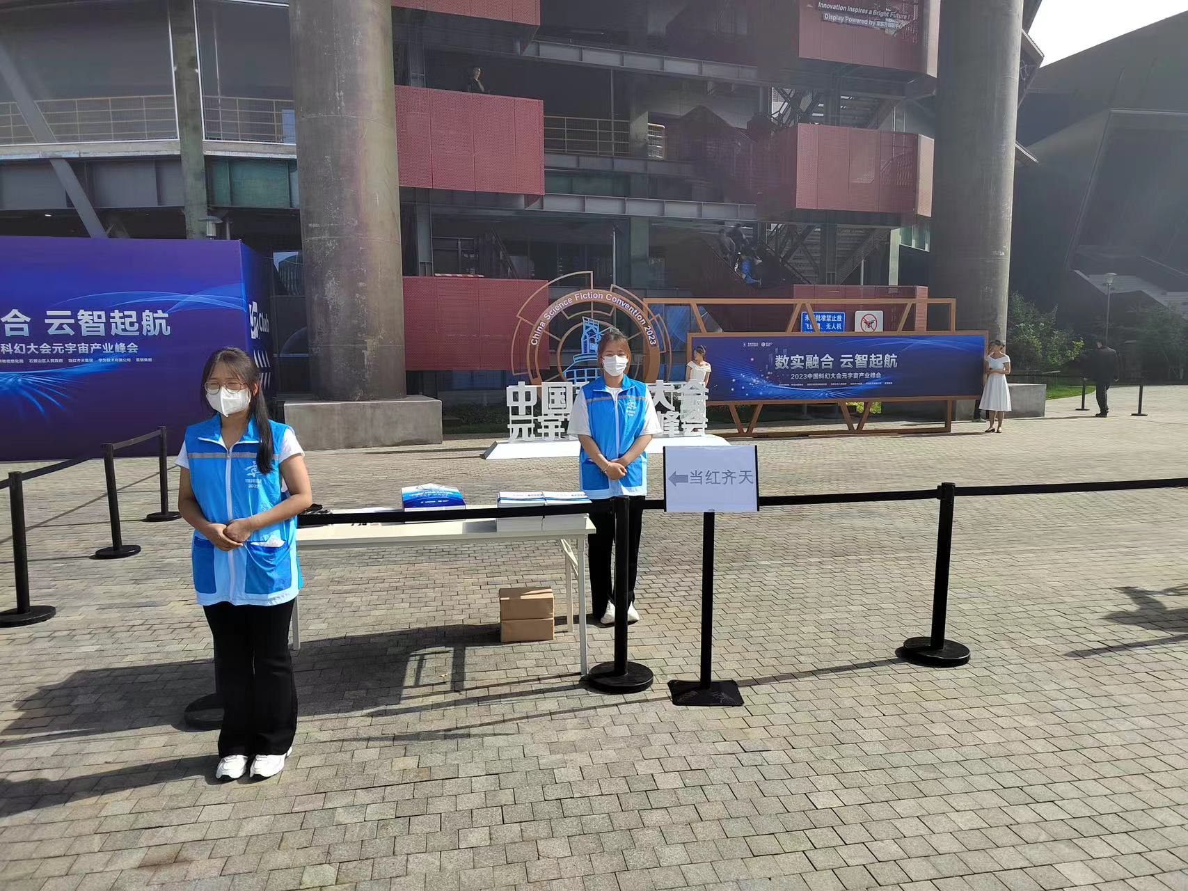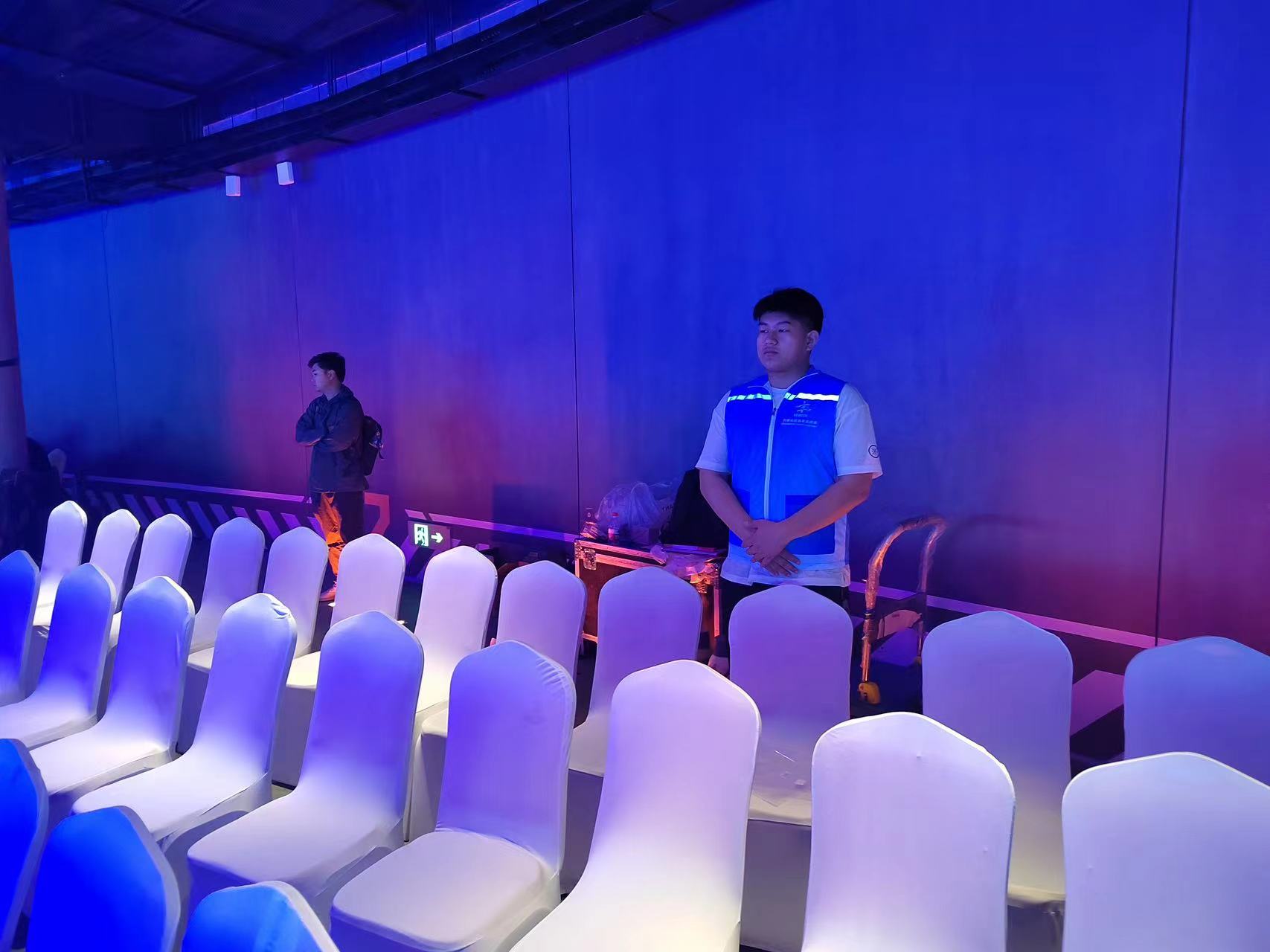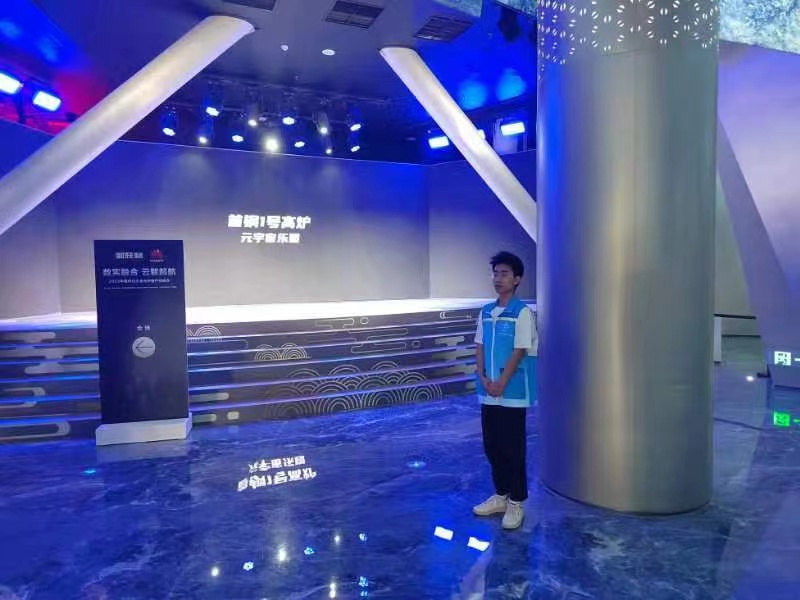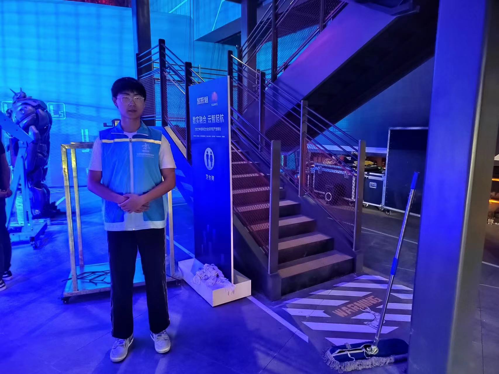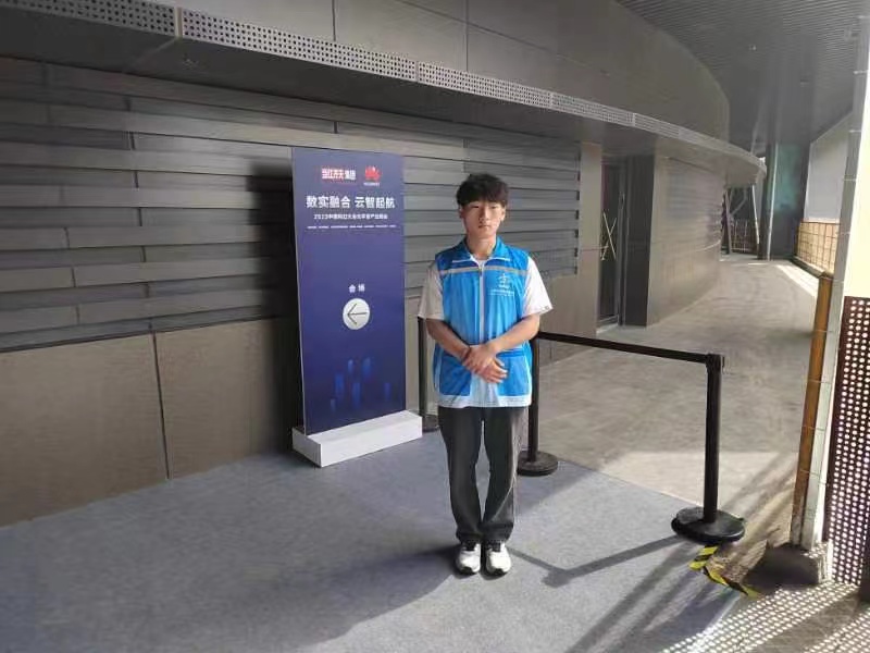 在楼梯口、卫生间、环廊区域等多点位,志愿者们进行安保管控,保障参会人员的安全,助力活动顺利开展。