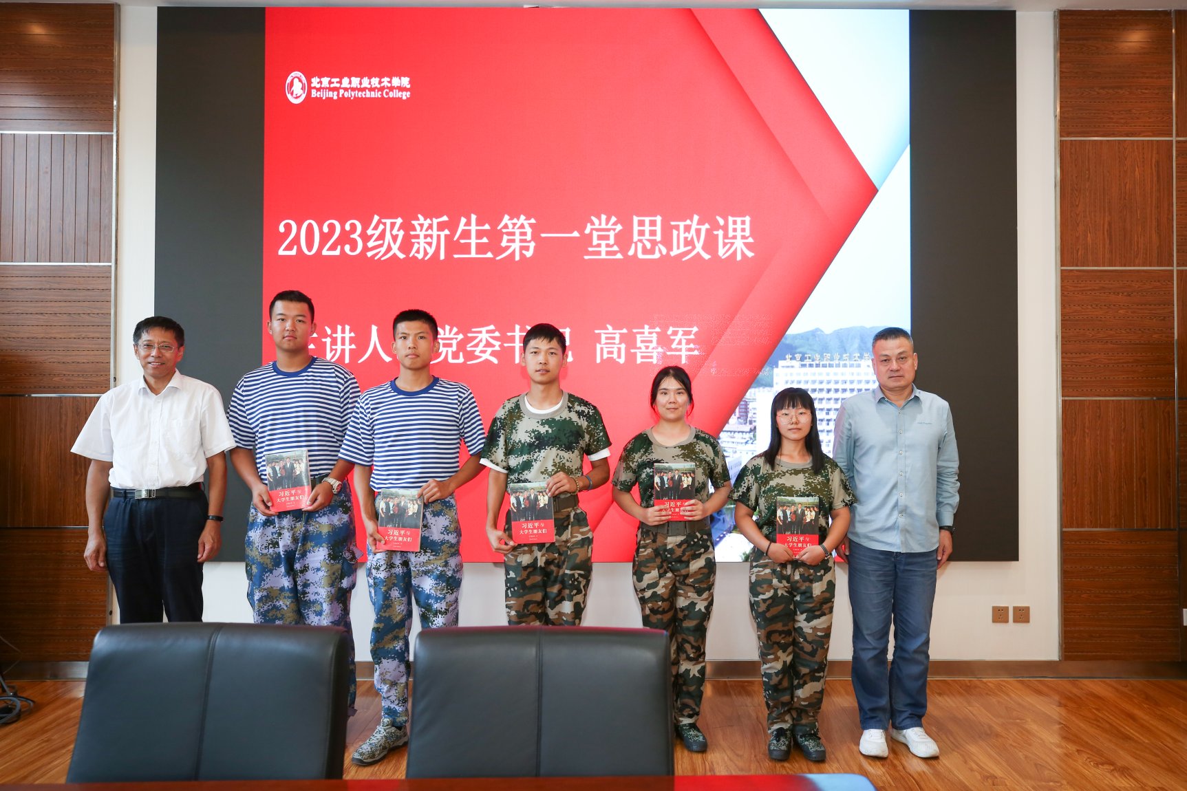 课程结束时,高喜军书记对新生寄语、赠送书籍《习近平与大学生朋友们》。