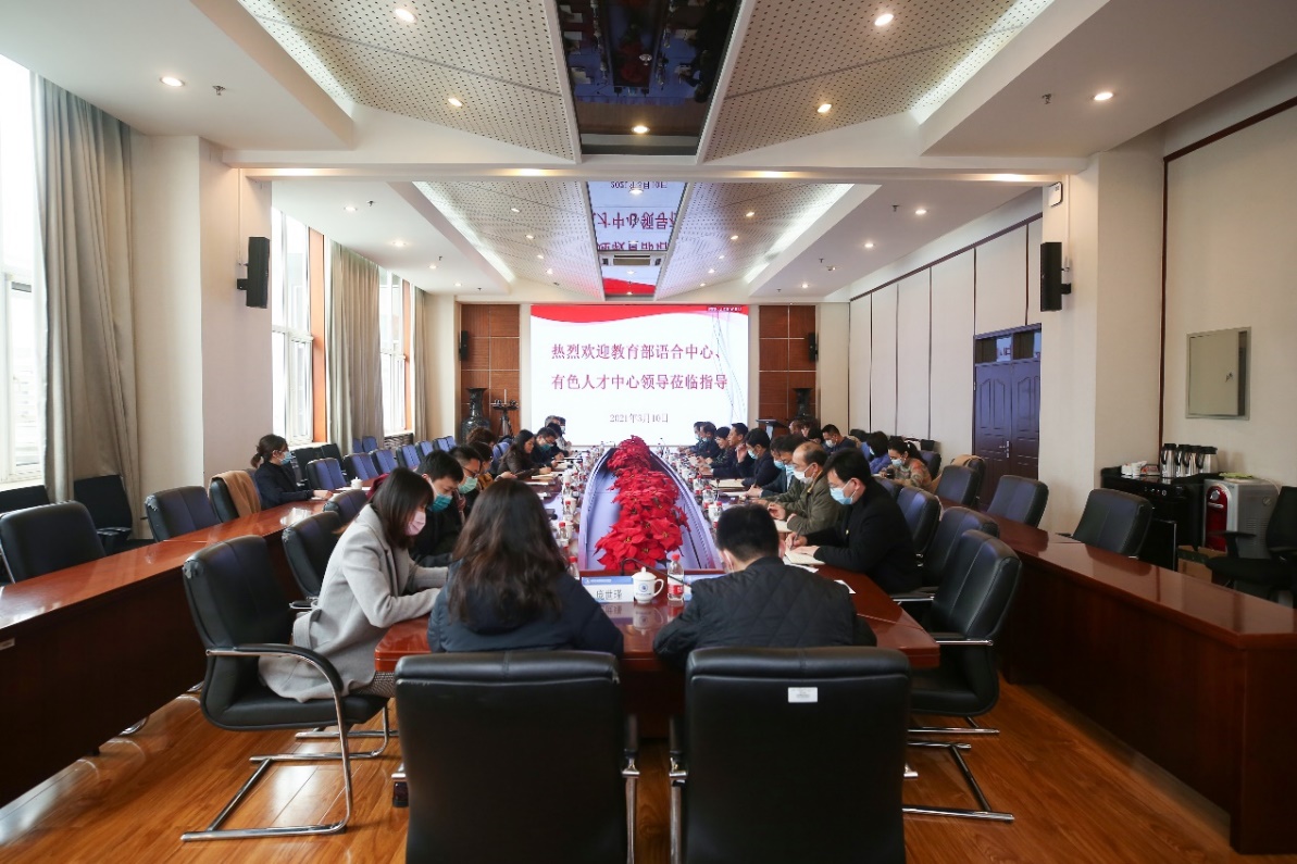 2021年3月10日,教育部中外交流合作中心(简称“语合中心”)政策研究处处长孟源、亚非处处长邵旭波一行到访我校。有色金属工业人才中心副主任宋凯、教育培训处处长赵丽霞、培训处干事郝梦真一同到访。我校党委书记高喜军、校长安江英、副校长周燕在匠心楼第四会议室接待了来访客人。国际处处长唐正清、机电工程学院院长张春芝、建筑与测绘工程学院院长李长青、电气与信息工程学院院长王巍、文法与管理学院院长许保国、基础教育学院院长王佼以及党政办公室和国际处相关人员参与调研。会议由副校长周燕主持。