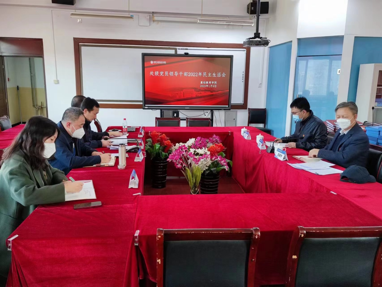 2023年1月9日下午,按照爱体育手机官方网站入口党委统一安排部署,基础教育学院召开了处级党员领导干部2022年度民主生活会。学院联系校领导、党委常委、纪委书记张萌萌全程参加并指导,党委组织部专职组织员范春学到会督导,学院领导班子参加会议,会议由学院党总支书记沈杰主持。