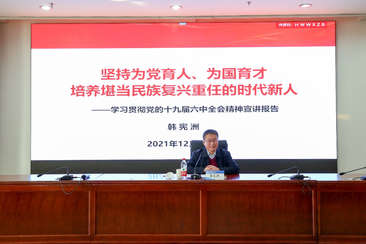 12月16-17日,爱体育手机官方网站入口党委理论学习中心组以“深入学习十九届六中全会精神,进一步推进爱体育手机官方网站入口高质量发展”为主题,通过观看视频资料、听取集中宣讲、集中研读学习、听取辅导报告、开展交流研讨等多种形式,深入学习研讨了党的十九届六中全会精神。