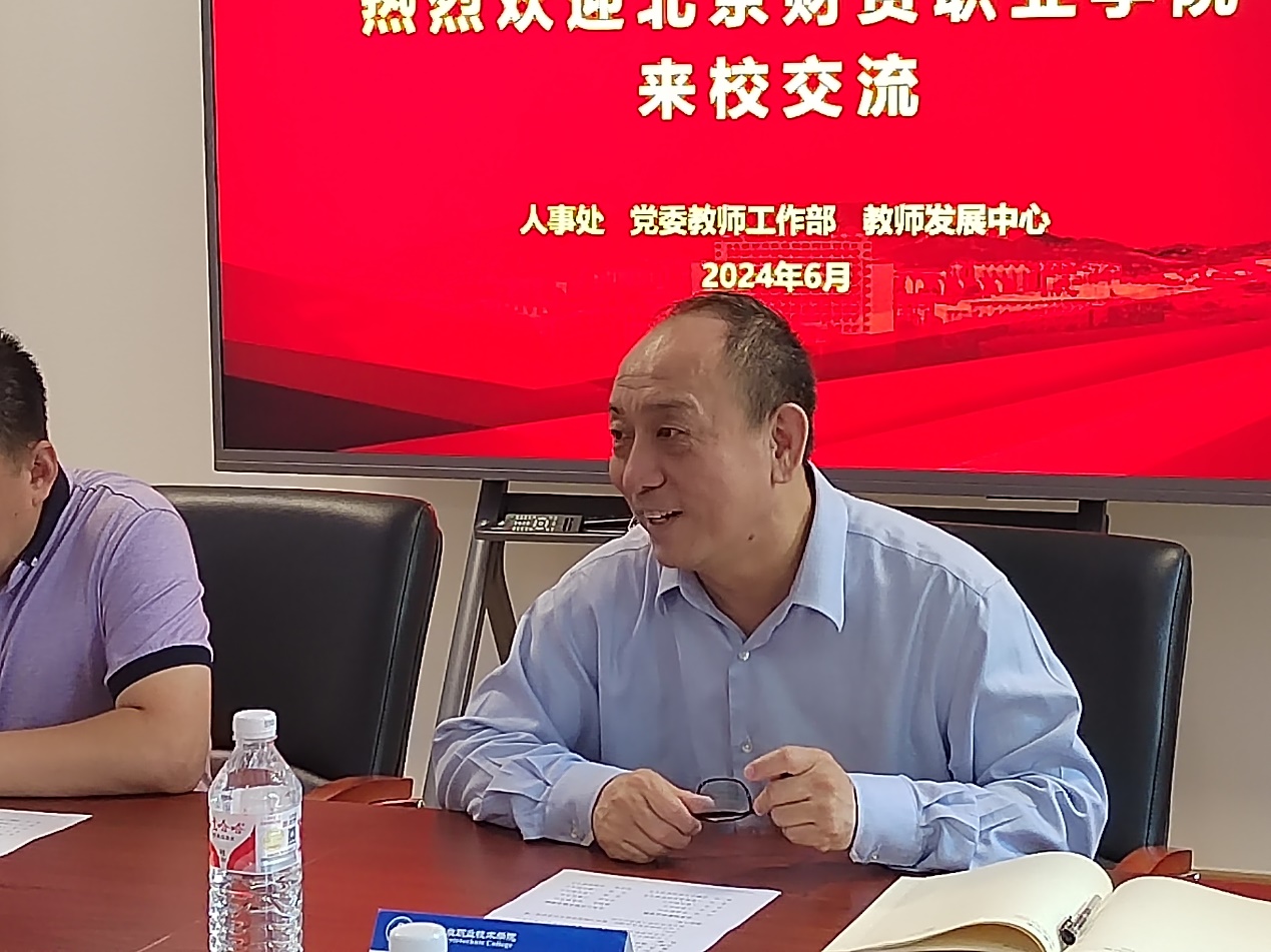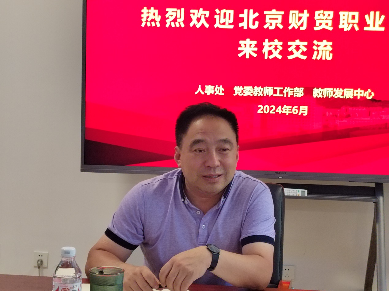 6月18日,北京财贸职业学院党委副书记高峰,人事处处长袁蕊,人事处副处长张佳等一行5人来校调研交流。爱体育手机官方网站入口党委副书记魏晓东,人事处处长任凤国,人事处副处长侯瑾、郎博以及相关工作人员参加调研。