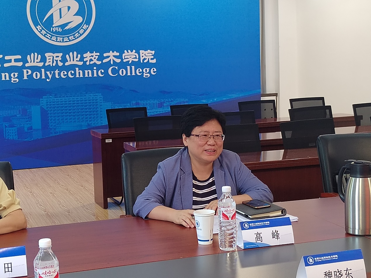 魏晓东对高峰一行到访表示热烈欢迎,并简要介绍了参会人员。他表示,两校同为“双高”建设校,专业设置、地理位置互补性强,合作前景广阔,期待今后进一步加强协作与交流,积极发挥各自优势,共同推动首都职业教育高质量发展。