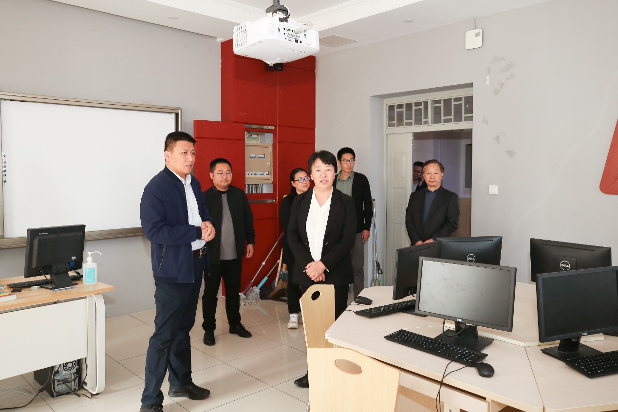田红芳考察了智慧文旅实训室、一站式学生社区,详细了解学院教育教学、学生管理、楼宇文化和实训室建设等相关情况,并听取了学院工作汇报。