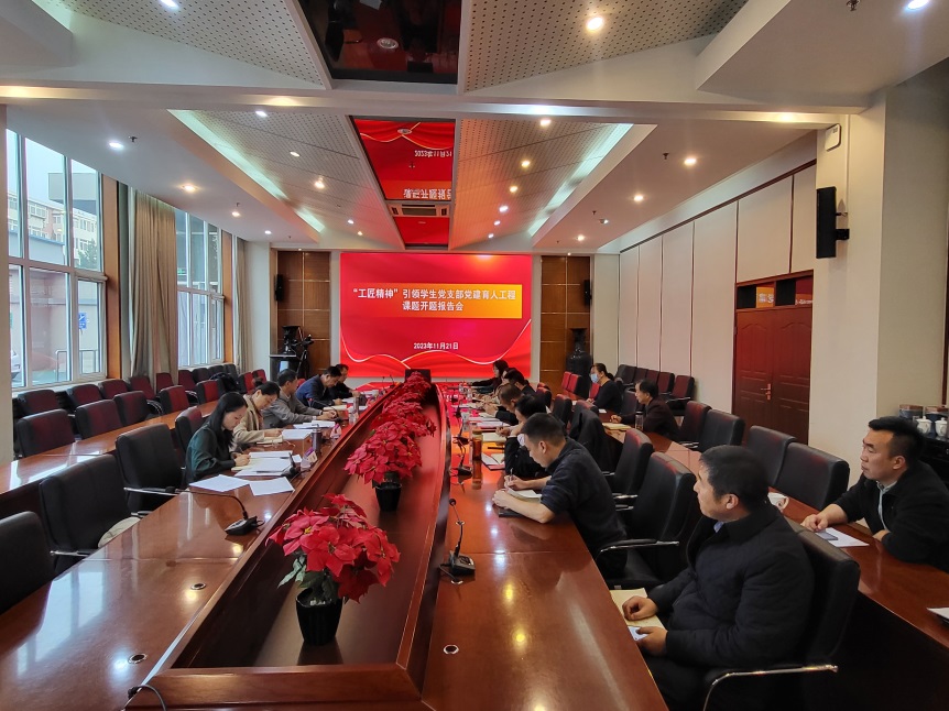 11月21日下午,课题开题报告会在第四会议室召开,党委书记高喜军,党委常委、副院长沈莹出席会议,党委组织部部长苗耀华、副部长兰健、党委宣传部副部长胡军伟担任立项评审,二级学院党总支副书记、学生党支部书记到会参加汇报,专职组织员列席评审会。