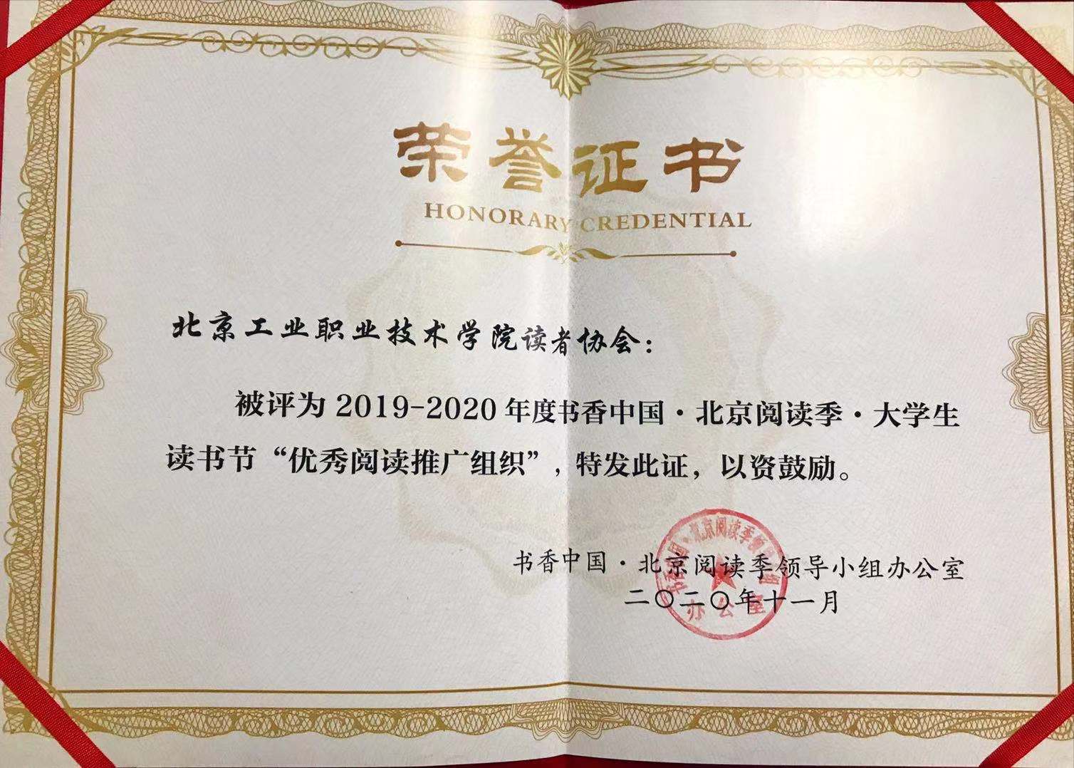 11月7日下午,“书香中国·北京阅读季·大学生读书节”总结会在王府井书店举办,我校读者协会被评为2019-2020年度书香中国·北京阅读季·大学生读书节“优秀阅读推广组织”。